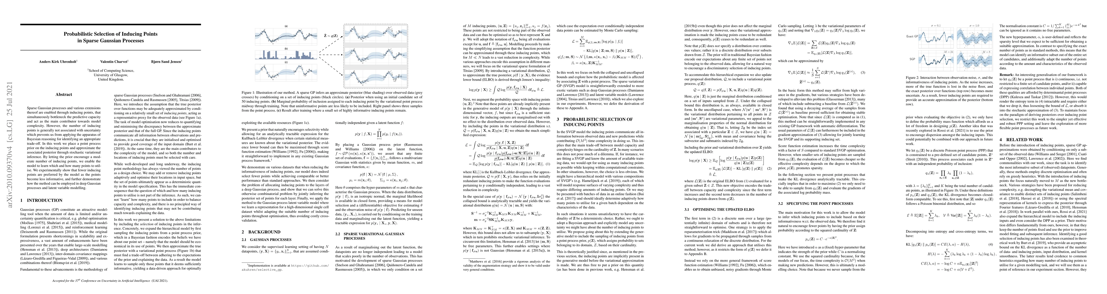 This paper proposes a probabilistic approach to select inducing points in sparse Gaussian processes by placing a point process prior on them, which allows the model to determine the optimal number and selection of inducing points based on their informativeness. The method employs stochastic variational inference to approximate the posterior and is shown to prefer fewer inducing points as they become less informative.