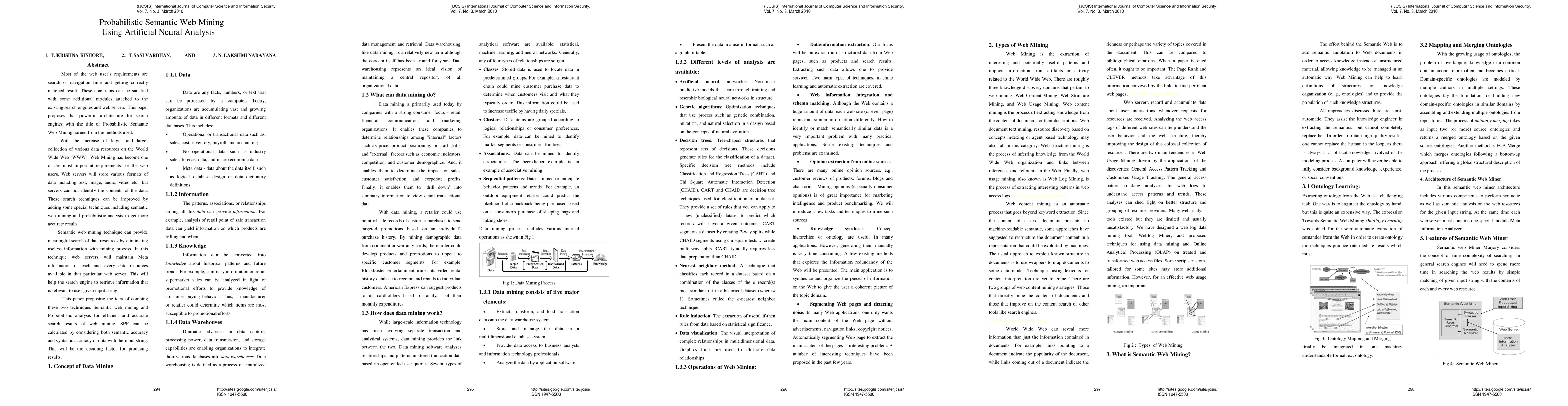 This paper proposes a probabilistic semantic web mining architecture to enhance search engine accuracy by combining semantic web mining and probabilistic analysis, aiming to retrieve relevant data resources and eliminate irrelevant information. The proposed method uses semantic accuracy and syntactic accuracy to calculate the Semantic Precision Factor (SPF) for improved search results.