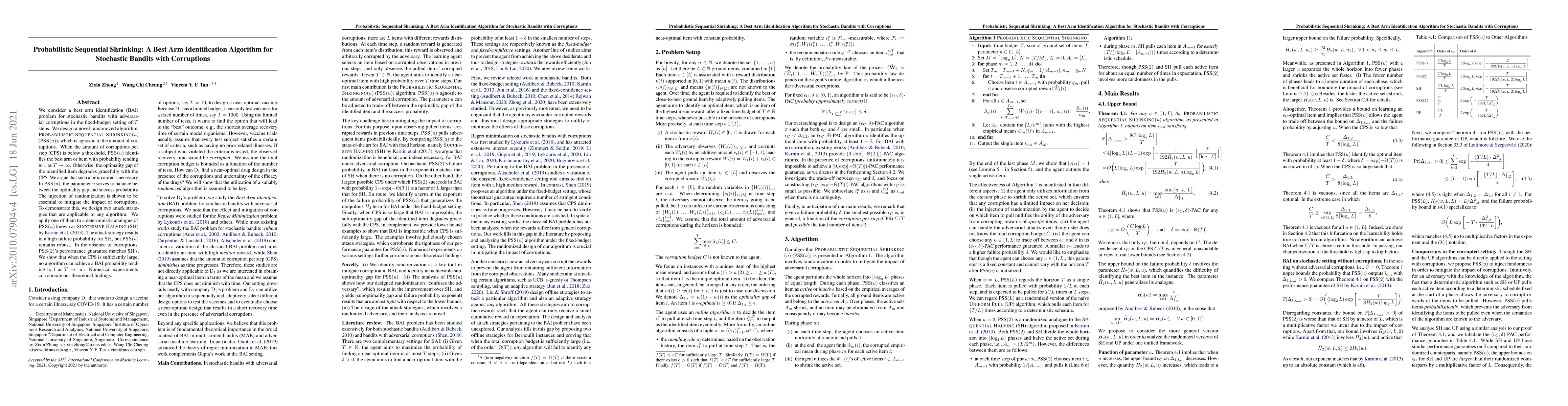 Researchers develop a probabilistic algorithm to identify best arms in stochastic bandits with corruptions, showing that some algorithms can't achieve high success probabilities even without corruption.