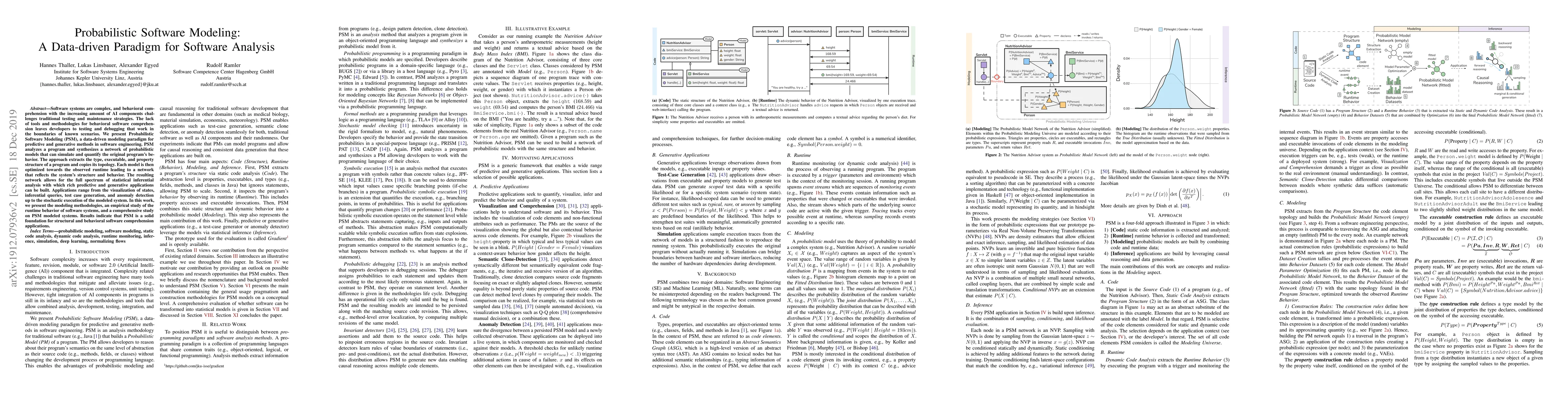Probabilistic Software Modeling (PSM) introduces a data-driven paradigm for software analysis, synthesizing probabilistic models to simulate and predict software behavior. This approach enables comprehensive inferential analysis and applications like test case generation and anomaly detection, enhancing traditional software testing and maintenance.