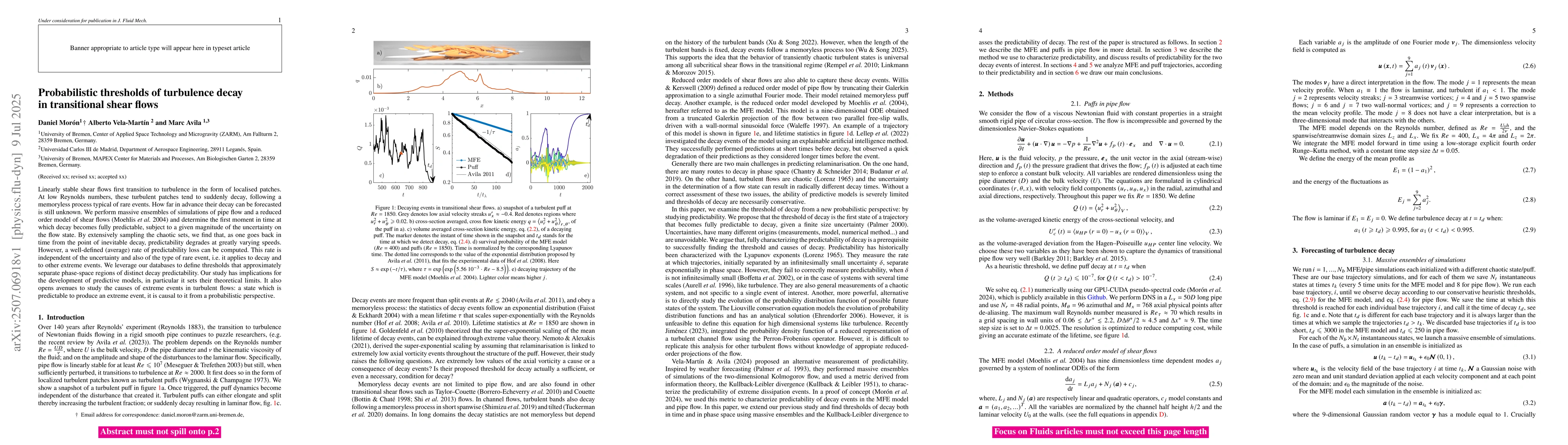 Linearly stable shear flows first transition to turbulence in the form of localised patches. At low Reynolds numbers, these turbulent patches tend to suddenly decay, following a memoryless process typical of rare events. How far in advance their decay can be forecasted is still unknown. We perform massive ensembles of simulations of pipe flow and a reduced order model of shear flows (Moehlis et al. 2004) and determine the first moment in time at which decay becomes fully predictable, subject to a given magnitude of the uncertainty on the flow state. By extensively sampling the chaotic sets, we find that, as one goes back in time from the point of inevitable decay, predictability degrades at greatly varying speeds. However, a well-defined (average) rate of predictability loss can be computed. This rate is independent of the uncertainty and also of the type of rare event, i.e. it applies to decay and to other extreme events. We leverage our databases to define thresholds that approximately separate phase-space regions of distinct decay predictability. Our study has implications for the development of predictive models, in particular it sets their theoretical limits. It also opens avenues to study the causes of extreme events in turbulent flows: a state which is predictable to produce an extreme event, it is causal to it from a probabilistic perspective.