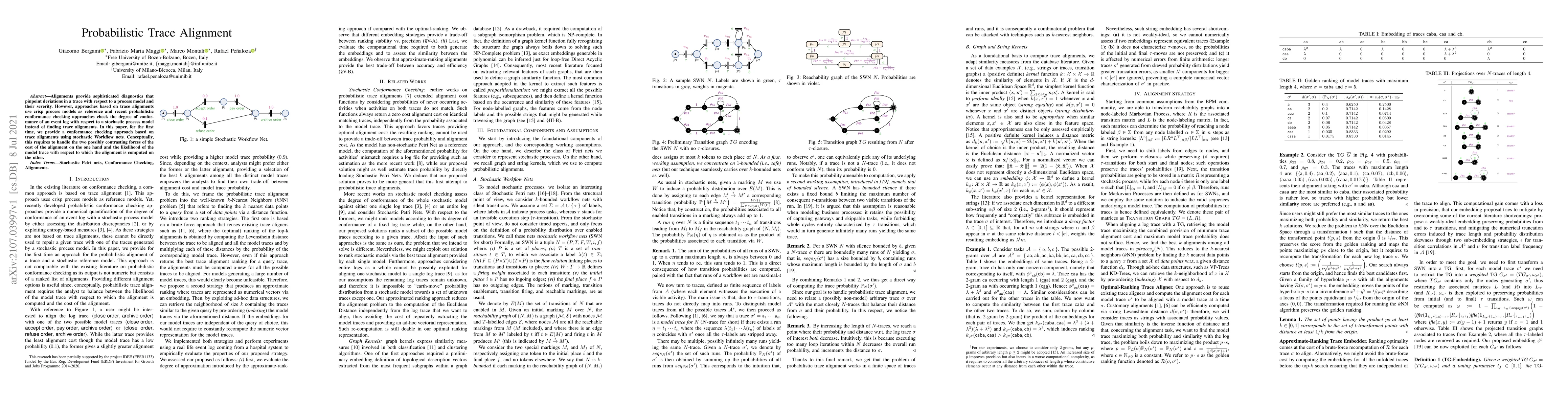 Alignments provide sophisticated diagnostics that pinpoint deviations in a trace with respect to a process model and their severity. However, approaches based on trace alignments use crisp process models as reference and recent probabilistic conformance checking approaches check the degree of conformance of an event log with respect to a stochastic process model instead of finding trace alignments. In this paper, for the first time, we provide a conformance checking approach based on trace alignments using stochastic Workflow nets. Conceptually, this requires to handle the two possibly contrasting forces of the cost of the alignment on the one hand and the likelihood of the model trace with respect to which the alignment is computed on the other.