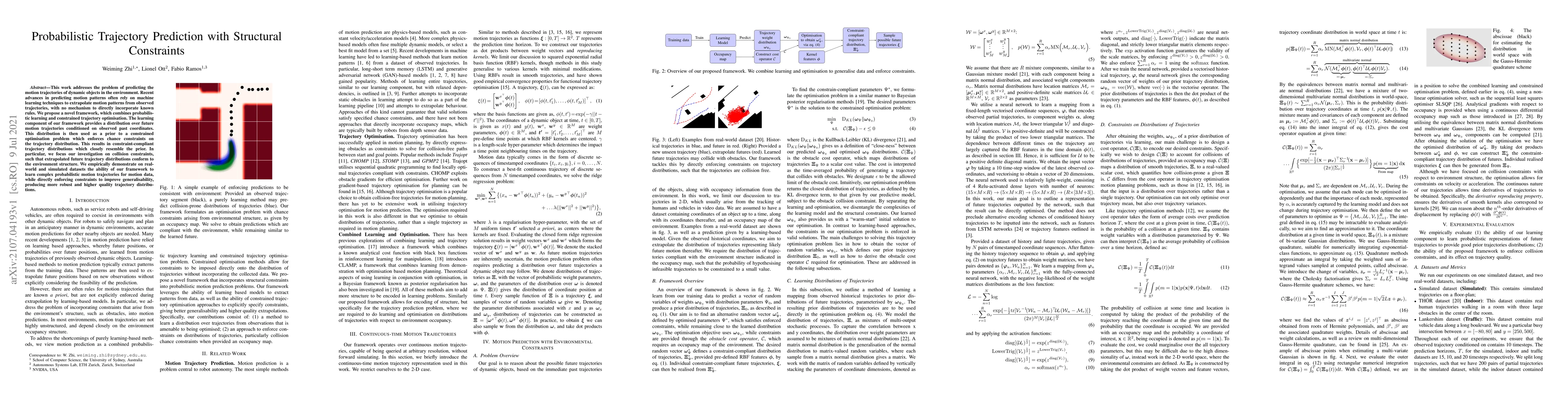This paper introduces a novel framework for predicting dynamic object trajectories by combining probabilistic learning and constrained optimization, ensuring that predicted trajectories adhere to structural constraints like collision avoidance. The framework demonstrates improved robustness and quality in trajectory predictions on real-world and simulated datasets.
