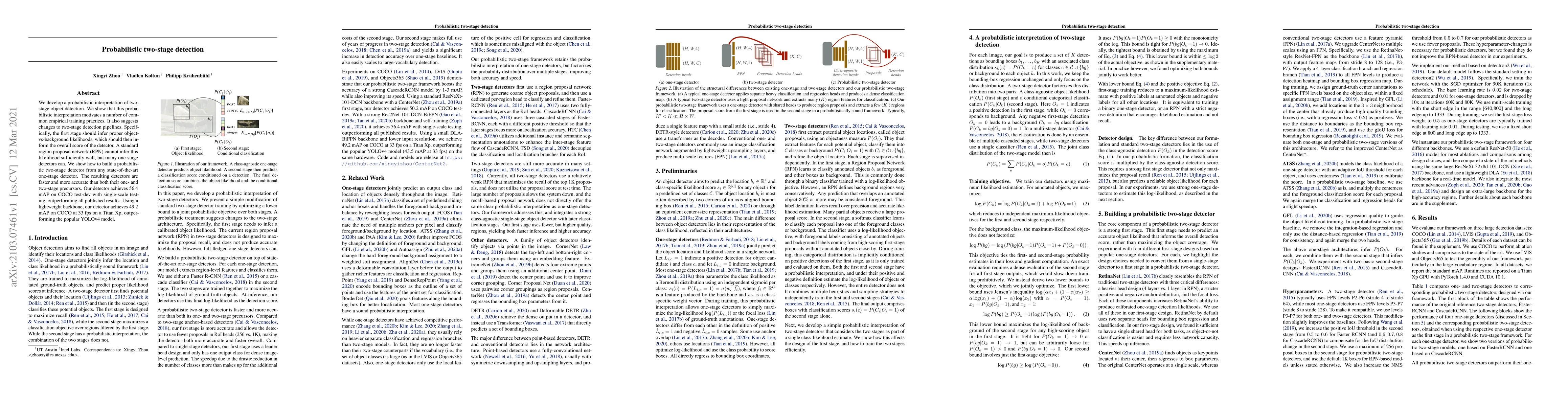 Researchers developed a probabilistic two-stage object detection method that improves accuracy and speed compared to existing one-stage detectors, achieving state-of-the-art results on the COCO test-dev dataset.