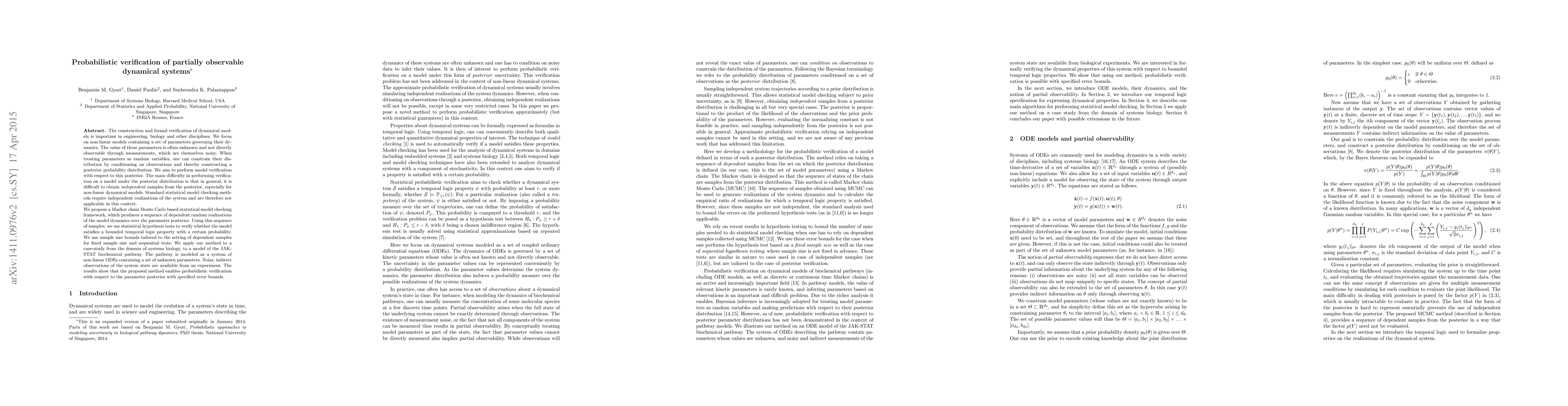 The paper introduces a novel MCMC-based statistical model checking framework for probabilistic verification of partially observable dynamical systems, along with propositions for choosing sample sizes and stopping conditions for hypothesis tests.
