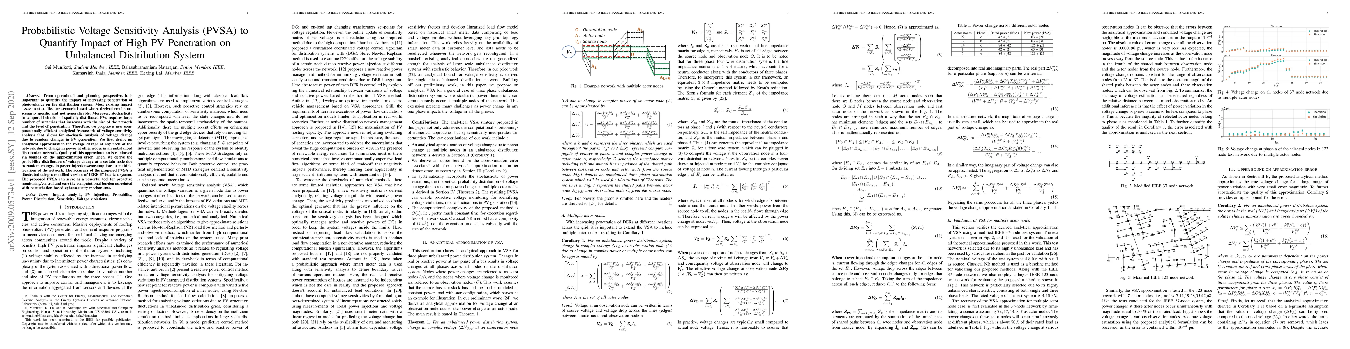 From an operational and planning perspective, it is important to quantify the impact of increasing penetration of photovoltaics on the distribution system. Most existing impact assessment studies are scenario-based where derived results are scenario specific and not generalizable. Moreover, stochasticity in the temporal behavior of spatially distributed PVs requires a large number of scenarios that increase with the size of the network and the level of penetration. Therefore, we propose a new computationally efficient analytical framework of voltage sensitivity analysis that allows for stochastic analysis of voltage change due to random changes in PV generation. We first derive an analytical approximation for voltage change at any node of the network due to change in power at other nodes in an unbalanced distribution network. The quality of this approximation is reinforced via bounds on the approximation error. Then, we derive the probability distribution of voltage change at a certain node due to random changes in power injections/consumptions at multiple locations of the network. The accuracy of the proposed PVSA is illustrated using a modified version of the IEEE 37 bus test system. The proposed PVSA can serve as a powerful tool for proactive monitoring/control and ease the computational burden associated with perturbation based cybersecurity mechanisms.