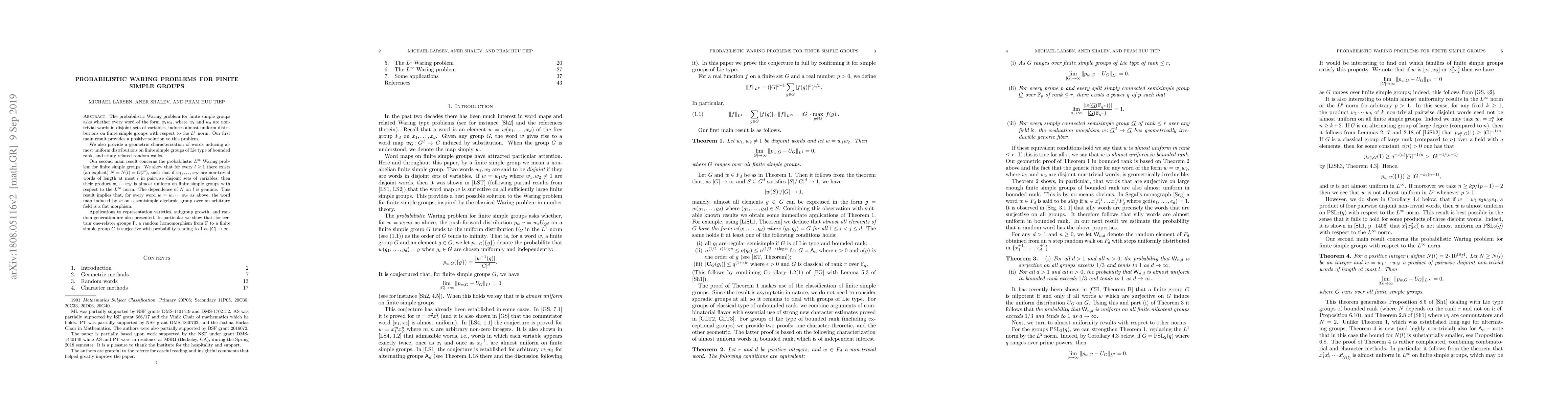 This paper addresses the probabilistic Waring problem for finite simple groups, proving that certain products of non-trivial words induce almost uniform distributions under $L^1$ and $L^{\infty}$ norms. It also characterizes words that achieve this and discusses applications to random generation and representation varieties.