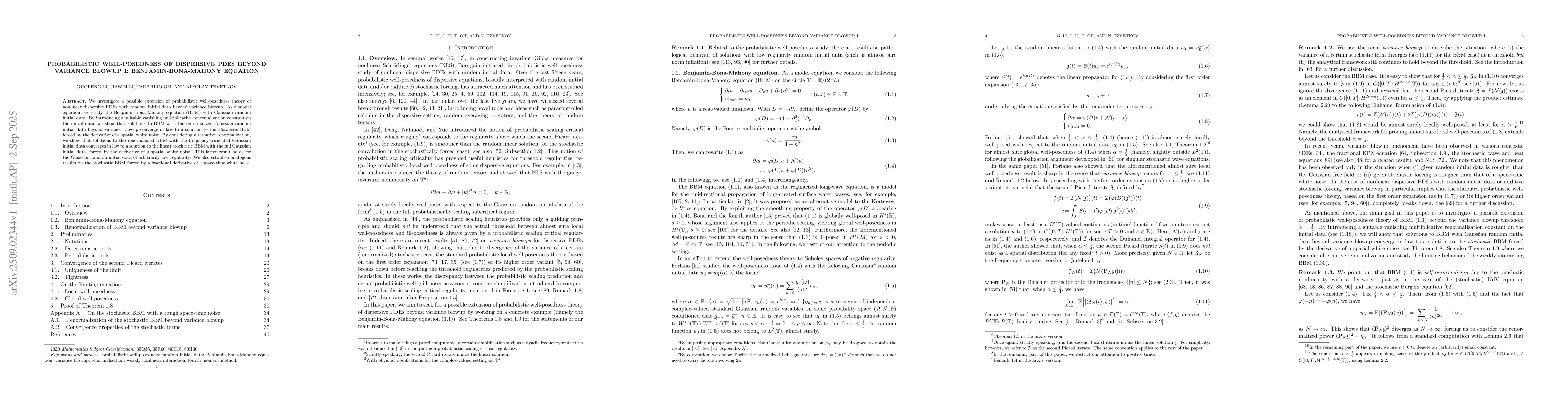 We investigate a possible extension of probabilistic well-posedness theory of nonlinear dispersive PDEs with random initial data beyond variance blowup. As a model equation, we study the Benjamin-Bona-Mahony equation (BBM) with Gaussian random initial data. By introducing a suitable vanishing multiplicative renormalization constant on the initial data, we show that solutions to BBM with the renormalized Gaussian random initial data beyond variance blowup converge in law to a solution to the stochastic BBM forced by the derivative of a spatial white noise. By considering alternative renormalization, we show that solutions to the renormalized BBM with the frequency-truncated Gaussian initial data converges in law to a solution to the linear stochastic BBM with the full Gaussian initial data, forced by the derivative of a spatial white noise. This latter result holds for the Gaussian random initial data of arbitrarily low regularity. We also establish analogous results for the stochastic BBM forced by a fractional derivative of a space-time white noise.