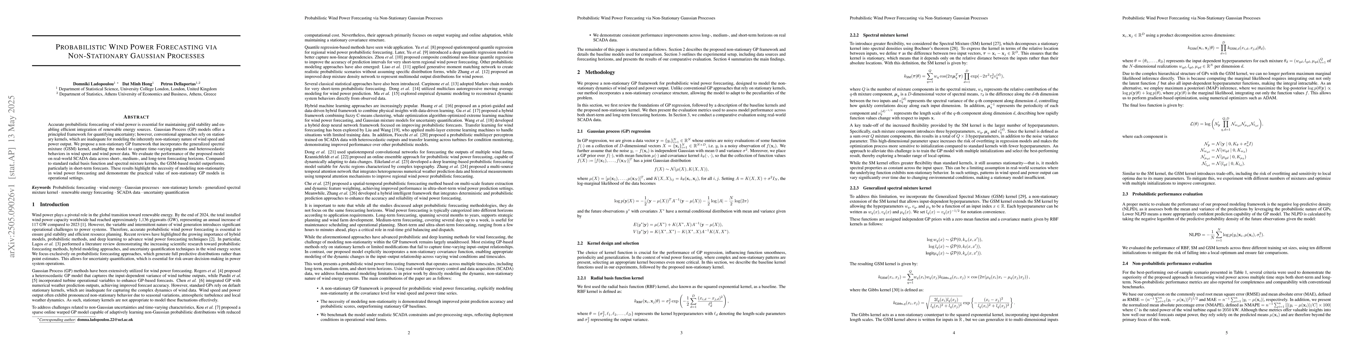Researchers developed a new probabilistic wind power forecasting model using non-stationary Gaussian processes with a generalized spectral mixture kernel, achieving better performance in short-term forecasts compared to traditional models.
