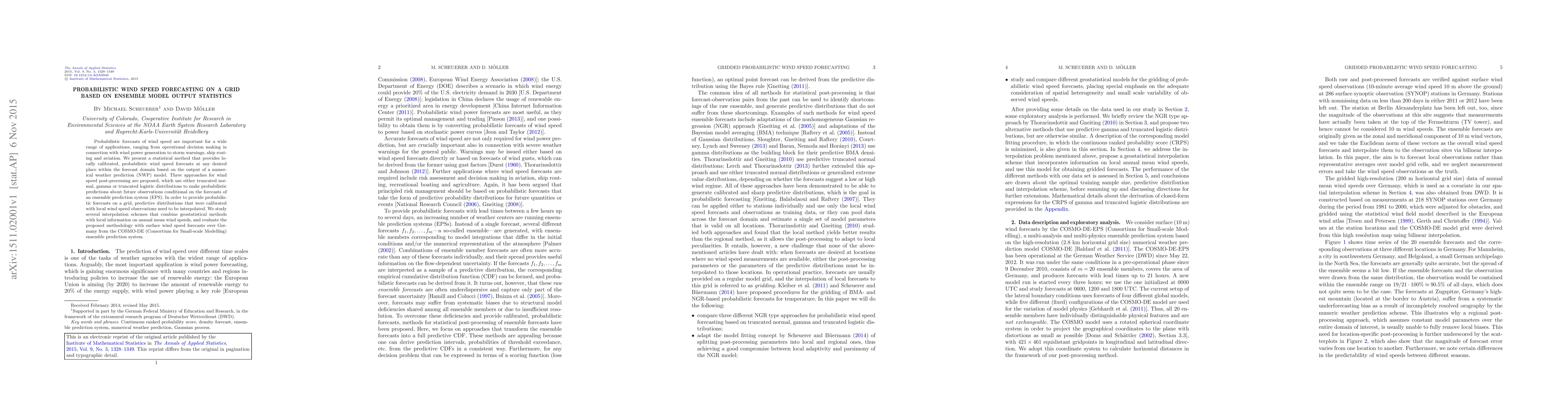 This paper presents a statistical method for generating locally calibrated probabilistic wind speed forecasts based on ensemble model outputs, employing truncated normal, gamma, and truncated logistic distributions. It evaluates various interpolation schemes to provide grid-based forecasts, using the COSMO-DE ensemble prediction system over Germany.