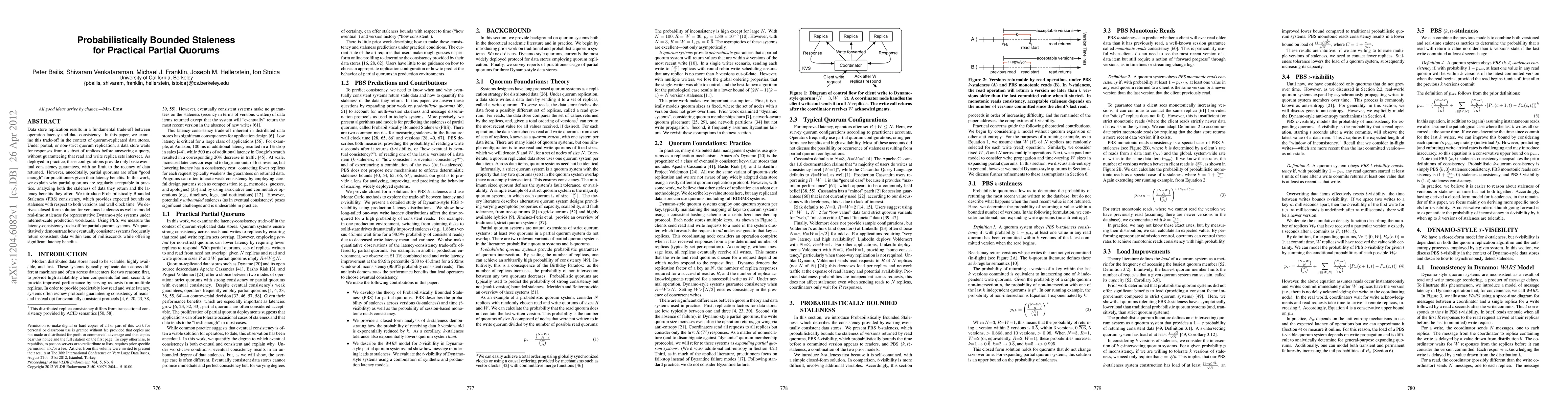 This paper explores the trade-off between latency and consistency in quorum-replicated data stores using partial quorums, introducing Probabilistically Bounded Staleness (PBS) to provide expected bounds on data staleness. It demonstrates that partial quorums often offer acceptable latency benefits while maintaining consistent data within milliseconds.