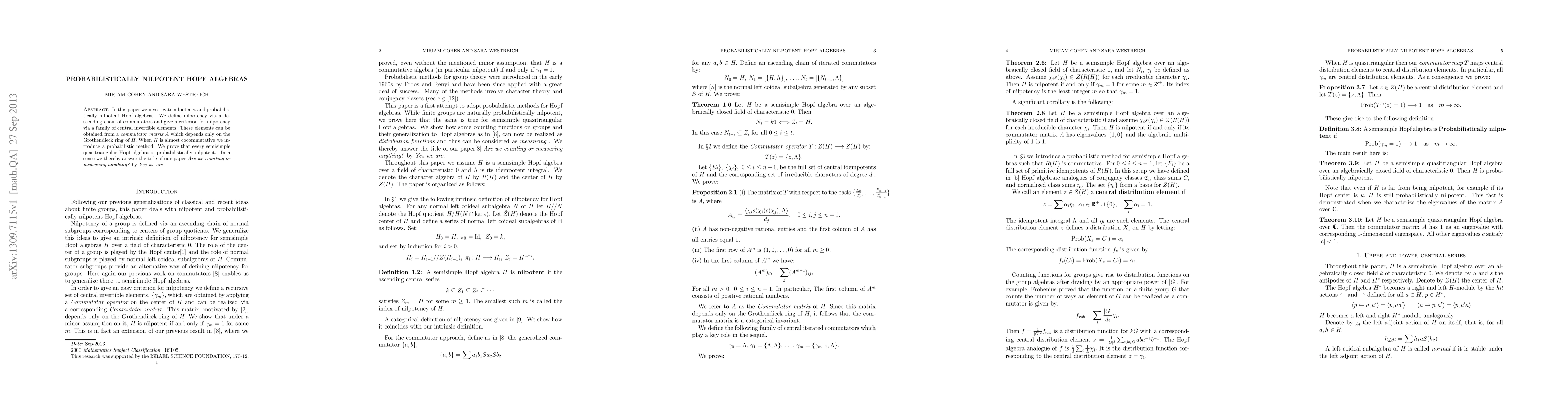 Researchers investigate nilpotent and probabilistically nilpotent Hopf algebras, proving that every semisimple quasitriangular Hopf algebra is probabilistically nilpotent, answering the question of whether they are counting or measuring anything.