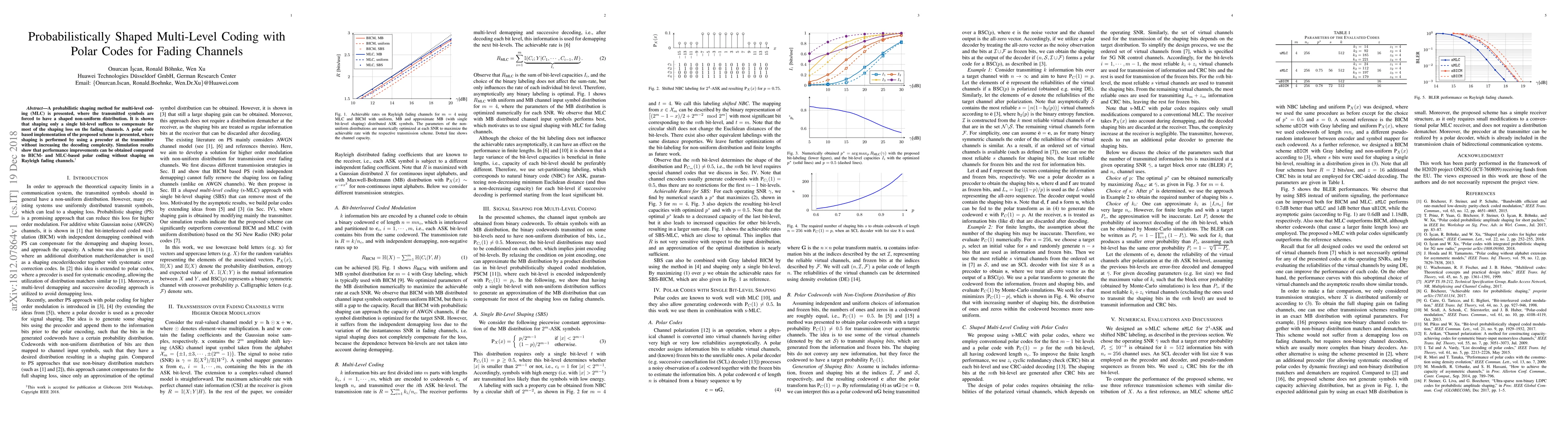 This paper proposes a probabilistic shaping method for multi-level coding with polar codes to improve performance on fading channels. Shaping a single bit-level compensates for most shaping losses, and the implementation uses a precoder without increasing decoding complexity, achieving better results than traditional methods on Rayleigh fading channels.