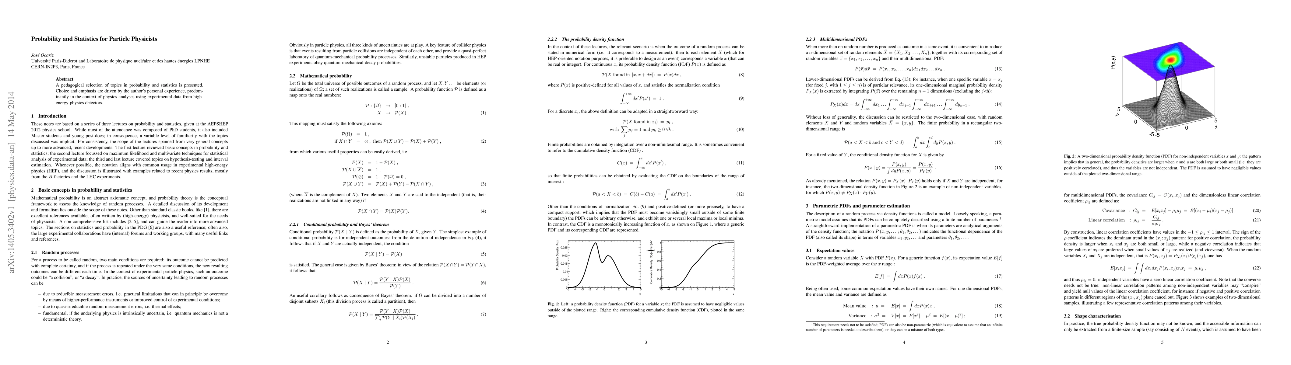 This paper compiles lectures on probability and statistics tailored for particle physicists, focusing on practical applications in analyzing experimental data from high-energy physics detectors, based on the author's extensive experience. The material was presented at the 1st CERN Asia-Europe-Pacific School of High-Energy Physics in Fukuoka, Japan.