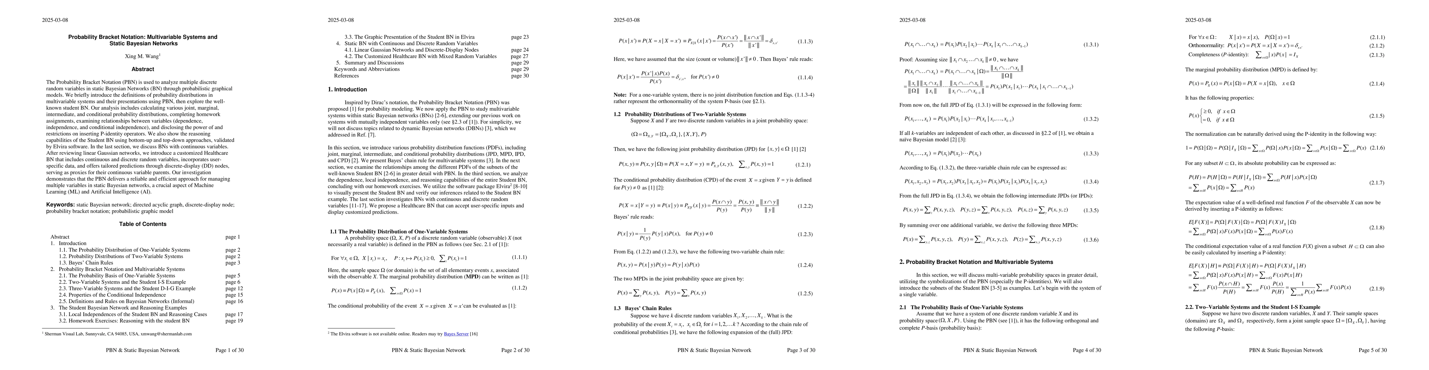 This paper applies Probability Bracket Notation (PBN) to study multivariable systems and static Bayesian Networks (BN), demonstrating its utility through the Student BN Example. The study finds PBN to be a consistent and convenient method for handling expressions related to joint, marginal, and conditional probabilities in static BN.