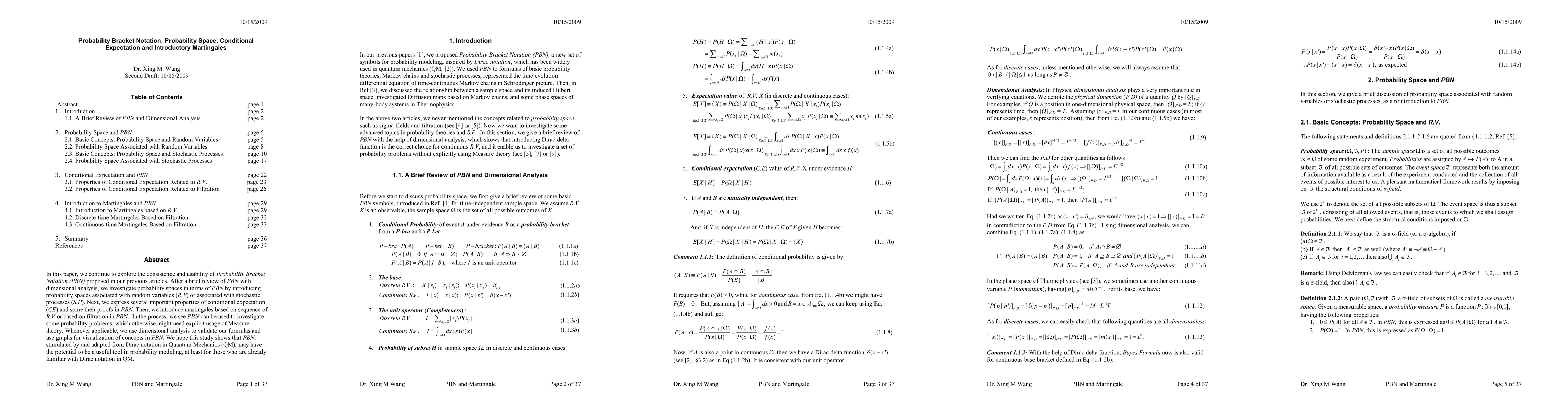 The paper introduces and expands upon Probability Bracket Notation (PBN), demonstrating its use in defining probability spaces, expressing conditional expectation properties, and modeling martingales, all inspired by Dirac notation in Quantum Mechanics.