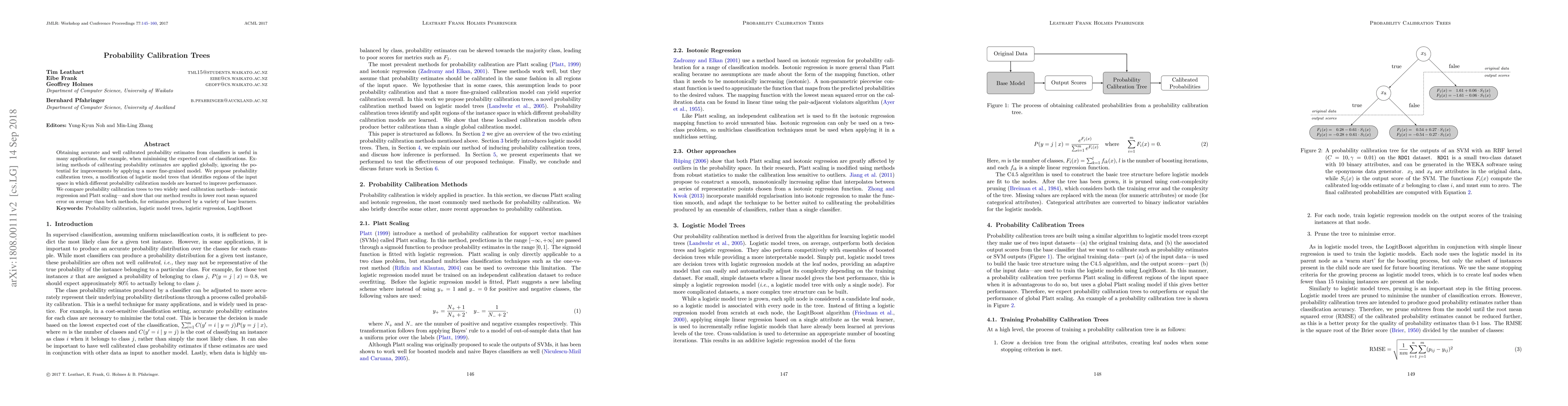 This paper proposes probability calibration trees, a refined approach to improve the accuracy of probability estimates from classifiers by applying different calibration models to distinct regions of the input space. The method outperforms isotonic regression and Platt scaling in reducing root mean squared error across various base learners.