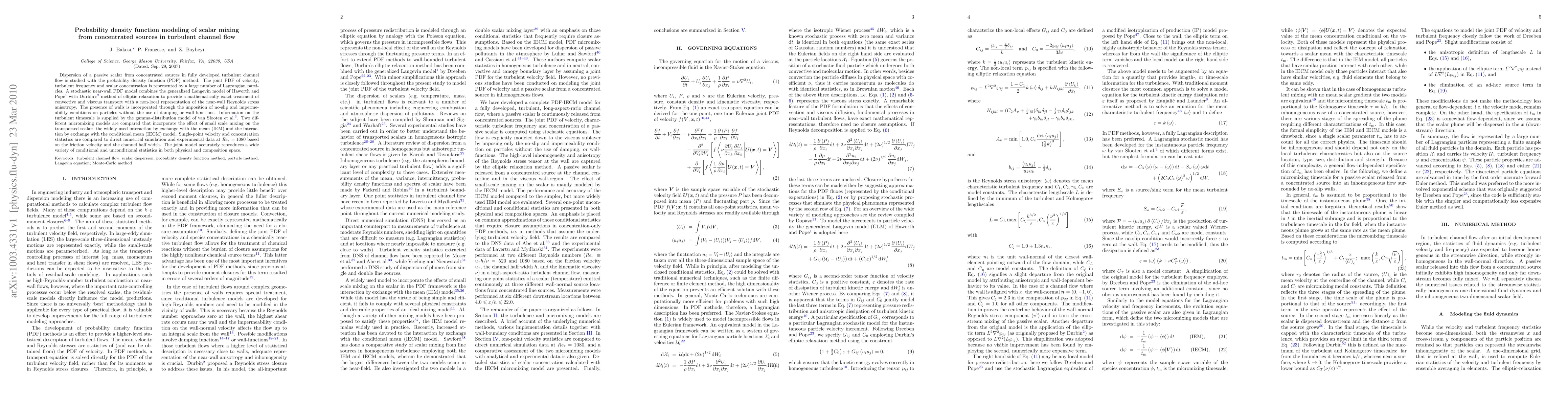 This paper models the dispersion of a passive scalar in turbulent channel flow using a probability density function (PDF) method, comparing two micromixing models and validating against simulations and experiments. The joint PDF model combines Lagrangian particles and a stochastic near-wall model for accurate representation of turbulent transport.