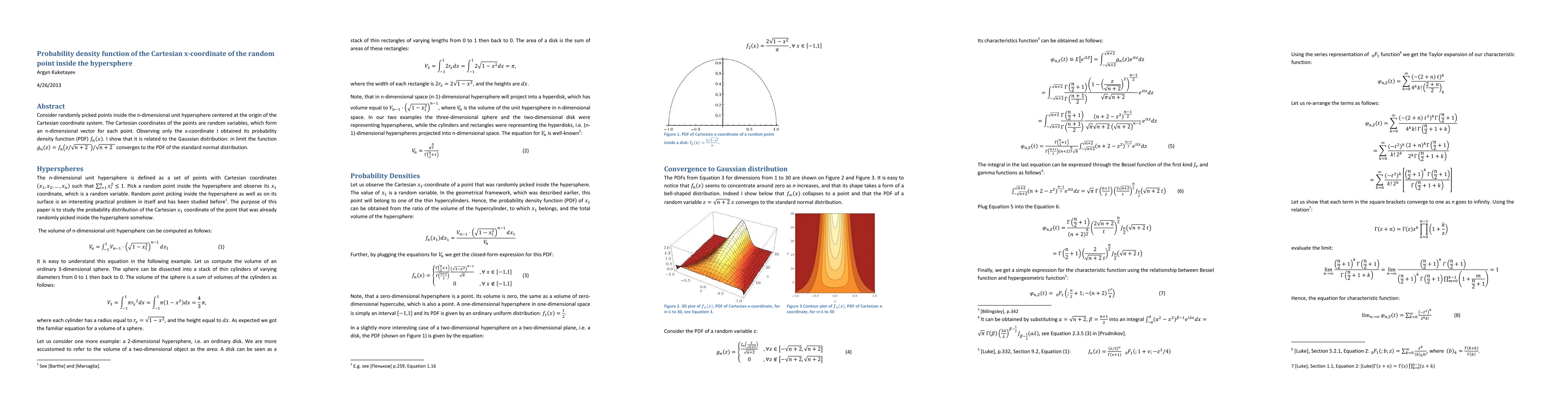 Consider randomly picked points inside the n-dimensional unit hypersphere centered at the origin of the Cartesian coordinate system. The Cartesian coordinates of the points are random variables, which form an n-dimensional vector for each point. Observing only the x-coordinate I obtained its probability density function (PDF). I show that it is related to the Gaussian distribution: in limit its companion PDF?? converges to the PDF of the standard normal distribution.