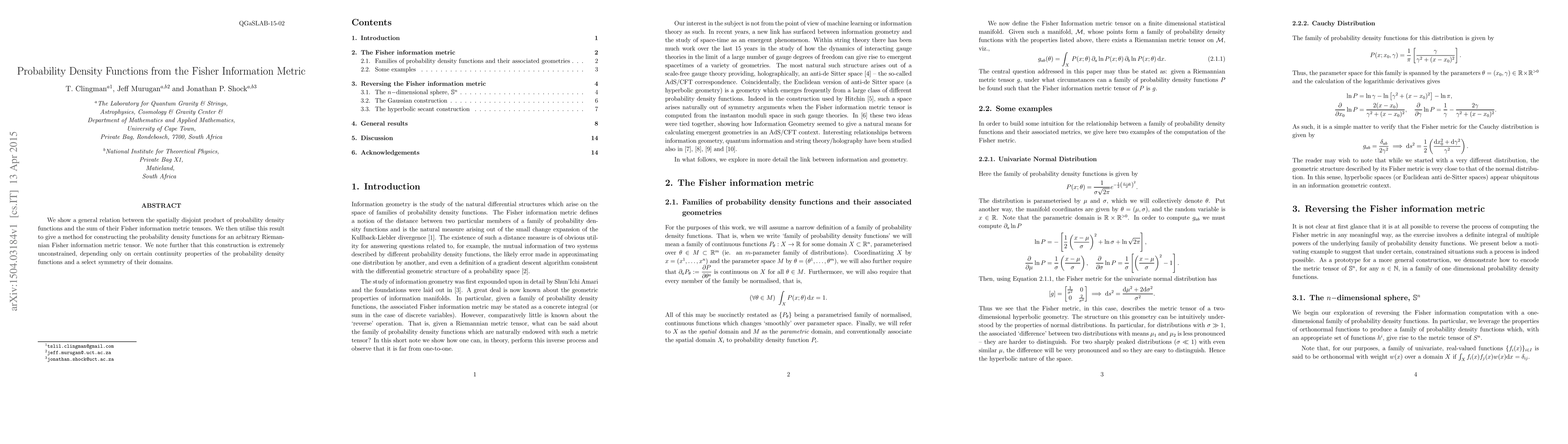 This paper establishes a connection between the product of disjoint probability density functions and the sum of their respective Fisher information metric tensors, and uses this relationship to develop a method for constructing probability density functions based on an arbitrary Riemannian Fisher information metric tensor, with minimal constraints beyond continuity and domain symmetry.