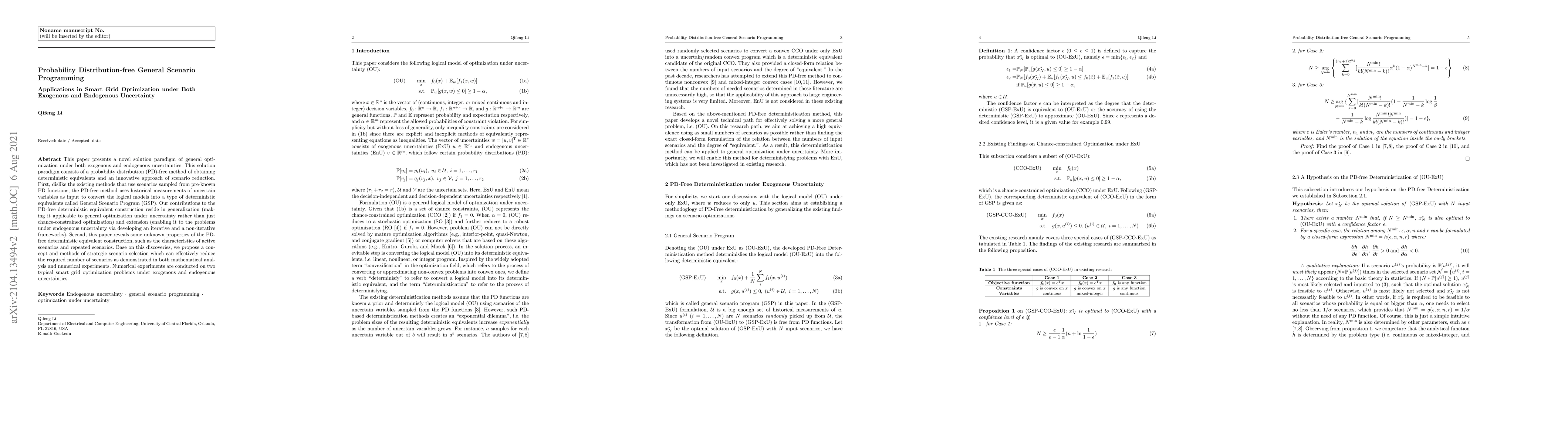 This paper introduces a probability distribution-free method for general optimization under uncertainty, converting historical data into deterministic equivalents called General Scenario Programs (GSP). It also proposes a scenario reduction technique to effectively decrease the number of scenarios needed, validated through smart grid optimization problems.