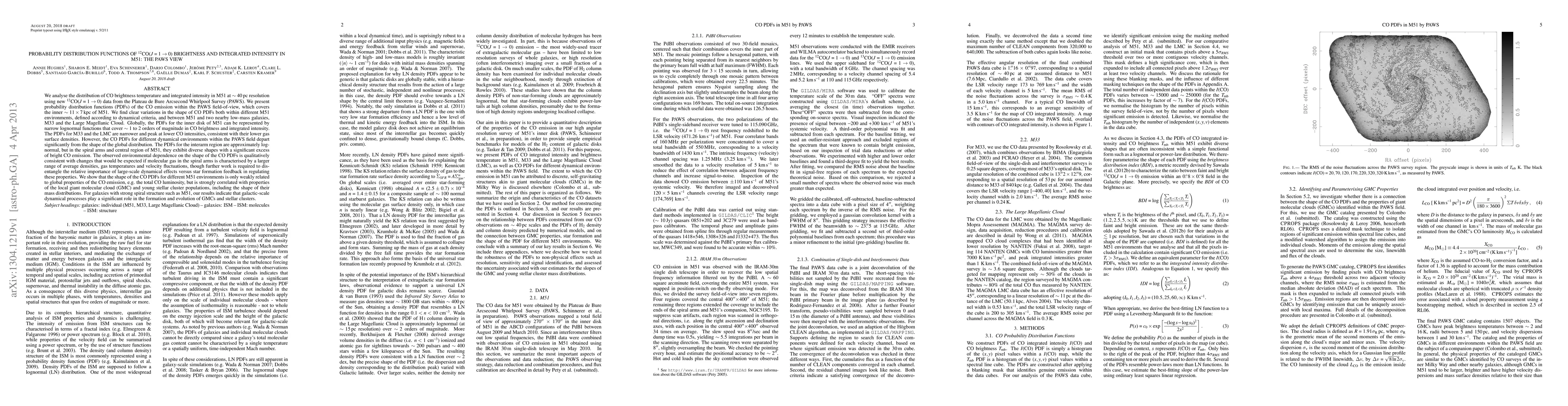 We analyse the distribution of CO brightness temperature and integrated intensity in M51 at ~40 pc resolution using new CO data from the Plateau de Bure Arcsecond Whirlpool Survey (PAWS). We present probability distribution functions (PDFs) of the CO emission within the PAWS field, which covers the inner 11 x 7 kpc of M51. We find variations in the shape of CO PDFs within different M51 environments, and between M51 and M33 and the Large Magellanic Cloud (LMC). Globally, the PDFs for the inner disk of M51 can be represented by narrow lognormal functions that cover 1 to 2 orders of magnitude in CO brightness and integrated intensity. The PDFs for M33 and the LMC are narrower and peak at lower CO intensities. However, the CO PDFs for different dynamical environments within the PAWS field depart from the shape of the global distribution. The PDFs for the interarm region are approximately lognormal, but in the spiral arms and central region of M51, they exhibit diverse shapes with a significant excess of bright CO emission. The observed environmental dependence of the shape of the CO PDFs is qualitatively consistent with changes that would be expected if molecular gas in the spiral arms has a larger range of average densities, gas temperatures and velocity fluctuations, though further work is required to disentangle the importance of large-scale dynamical effects versus star formation feedback in regulating these properties. We show that the shape of the CO PDFs for different M51 environments is only weakly related to global properties of the CO emission, but is strongly correlated with some properties of the local giant molecular cloud (GMC) and young stellar cluster populations. For galaxies with strong spiral structure such as M51, our results indicate that galactic-scale dynamical processes play a significant role in the formation and evolution of GMCs and stellar clusters.(abridged)