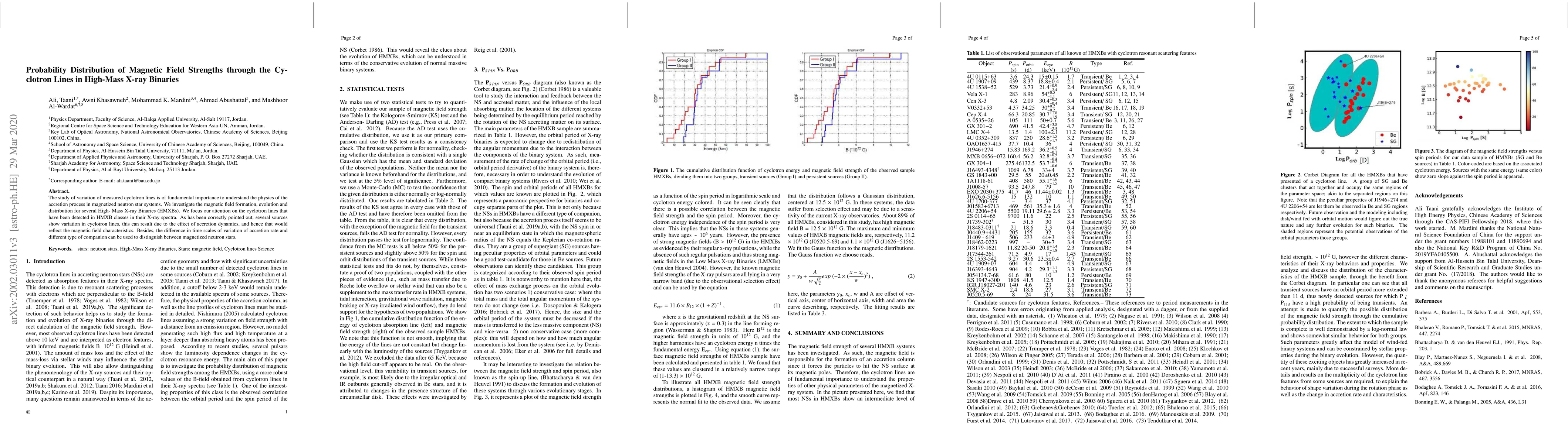 This paper investigates the probability distribution of magnetic field strengths in High-Mass X-ray Binaries (HMXBs) through cyclotron lines in their X-ray spectra, aiming to understand the accretion dynamics and magnetic field characteristics of magnetized neutron stars. Variations in cyclotron lines are analyzed to distinguish between different types of neutron stars based on accretion rate and companion type.