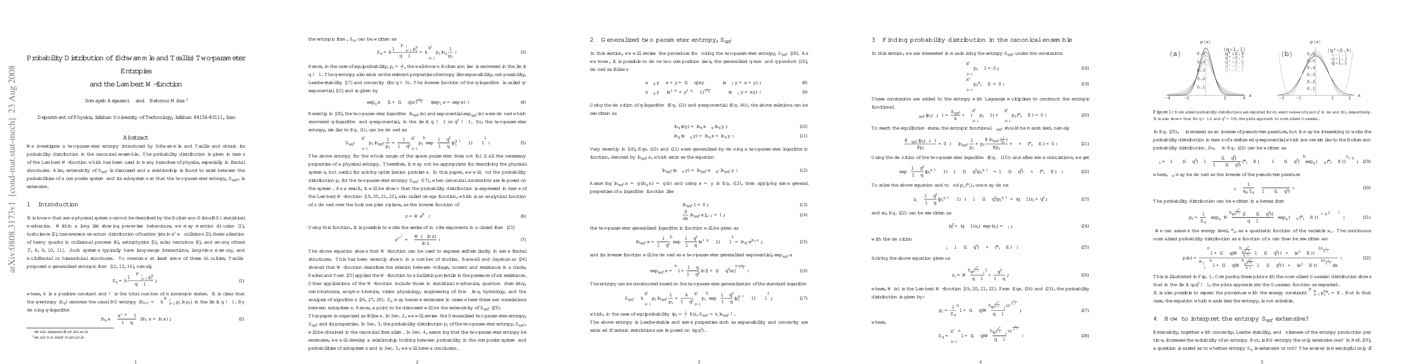 We investigate a two-parameter entropy introduced by Schw\"{a}mmle and Tsallis and obtain its probability distribution in the canonical ensemble. The probability distribution is given in terms of the Lambert W-function which has been used in many branches of physics, especially in fractal structures. Also, extensivity of $S_{q,q'}$ is discussed and a relationship is found to exist between the probabilities of a composite system and its subsystems so that the two-parameter entropy, $S_{q,q'}$, is extensive.