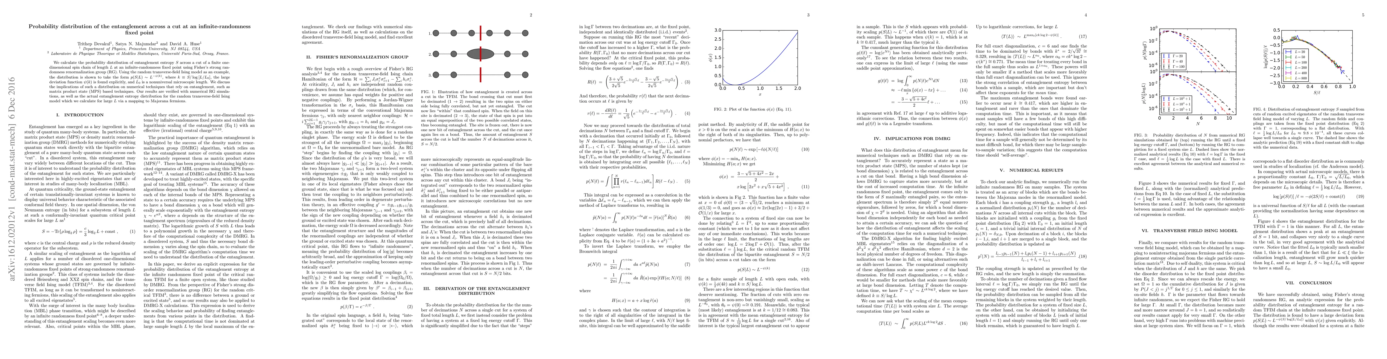 This paper calculates the probability distribution of entanglement entropy across a finite one-dimensional spin chain at an infinite-randomness fixed point using Fisher's strong randomness renormalization group. The distribution is shown to follow $p(S|L) \sim L^{-\psi(k)}$, with implications for numerical techniques relying on entanglement.