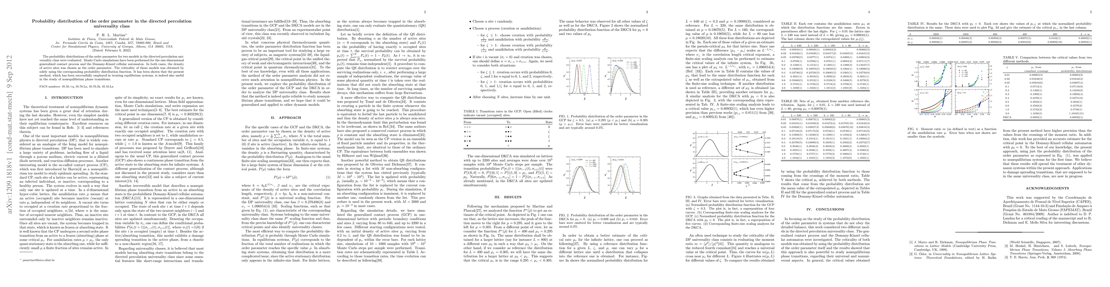 Researchers used Monte Carlo simulations to study nonequilibrium phase transitions in two models of directed percolation, finding that analyzing the probability distribution of an order parameter can reveal criticality without relying on equilibrium conditions.
