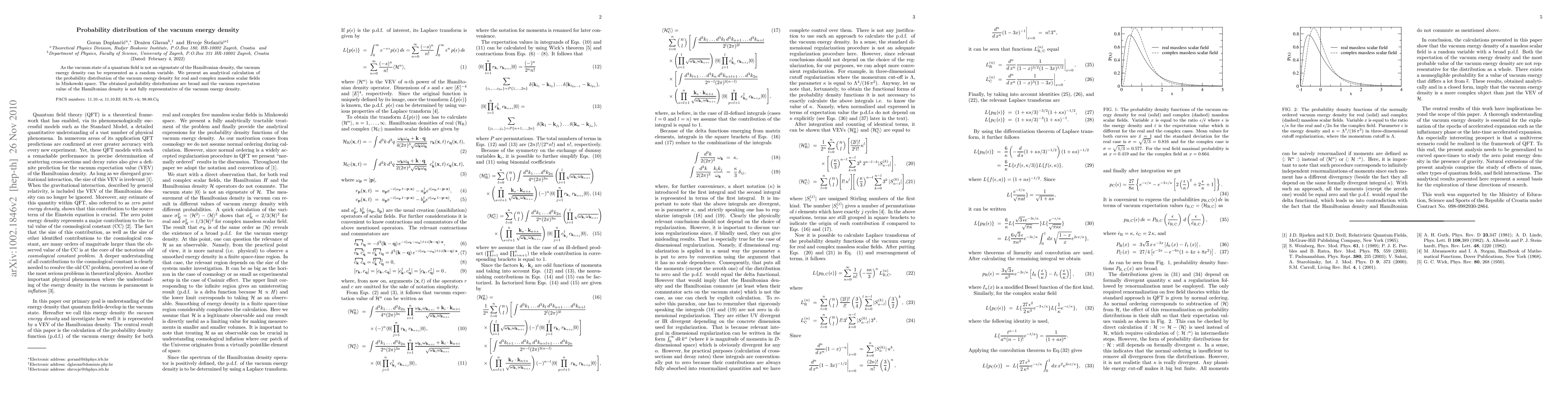 This paper analytically calculates the probability distribution of vacuum energy density for massless scalar fields, showing that it is broad and not fully captured by the vacuum expectation value of the Hamiltonian density. The findings suggest a more nuanced understanding of vacuum states in quantum field theory.