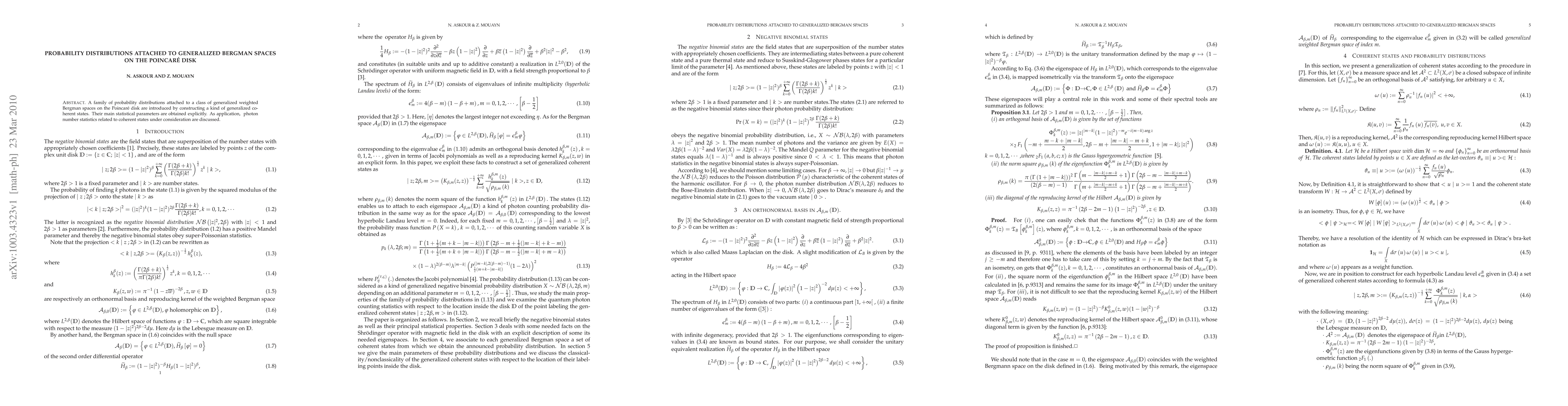 This paper introduces probability distributions linked to generalized weighted Bergman spaces on the Poincaré disk via generalized coherent states, providing explicit expressions for their main statistical parameters and discussing photon number statistics as an application.