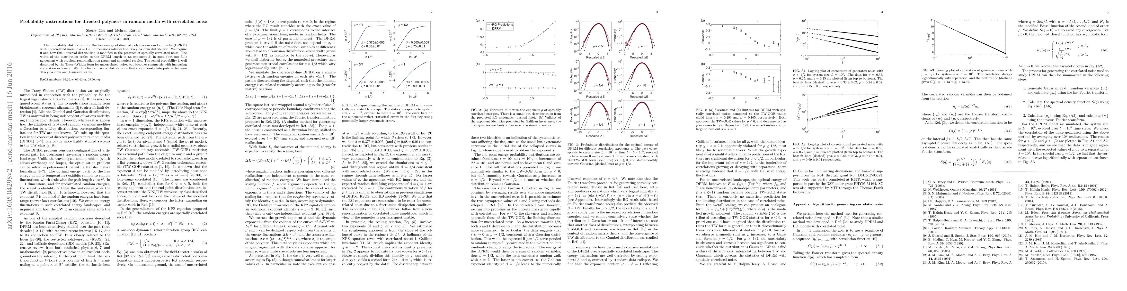 The probability distribution for the free energy of directed polymers in random media (DPRM) with uncorrelated noise in $d=1+1$ dimensions satisfies the Tracy-Widom distribution. We inquire if and how this universal distribution is modified in the presence of spatially correlated noise. The width of the distribution scales as the DPRM length to an exponent $\beta$, in good (but not full) agreement with previous renormalization group and numerical results. The scaled probability is well described by the Tracy-Widom form for uncorrelated noise, but becomes symmetric with increasing correlation exponent. We thus find a class of distributions that continuously interpolates between Tracy-Widom and Gaussian forms.