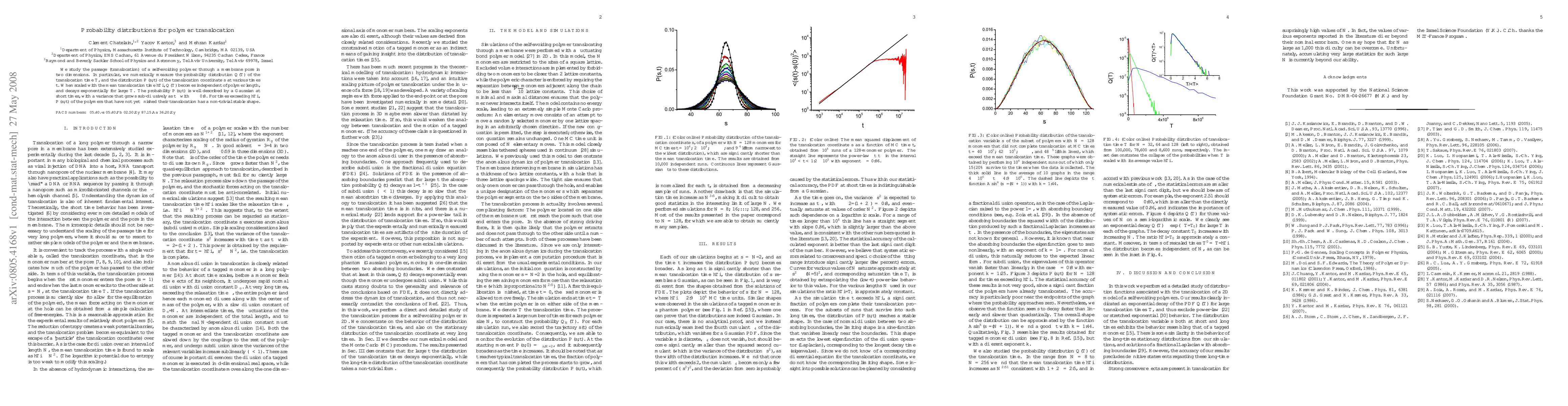 P(s,t) of the translocation coordinate s at various times t. When scaled with