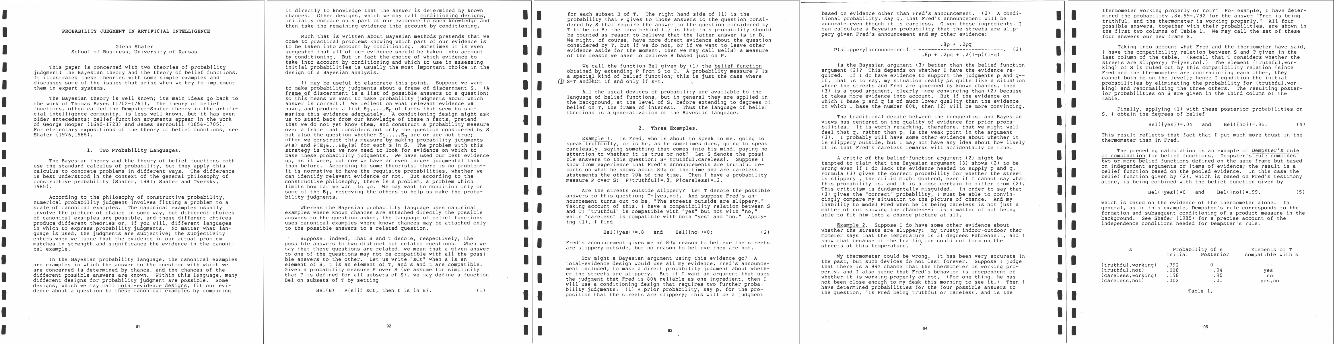 This paper compares Bayesian and belief function theories of probability judgment, illustrating their implementation challenges in expert systems, with Bayesian theory rooted in Thomas Bayes' work and belief functions tracing back to George Hooper and James Bernoulli.