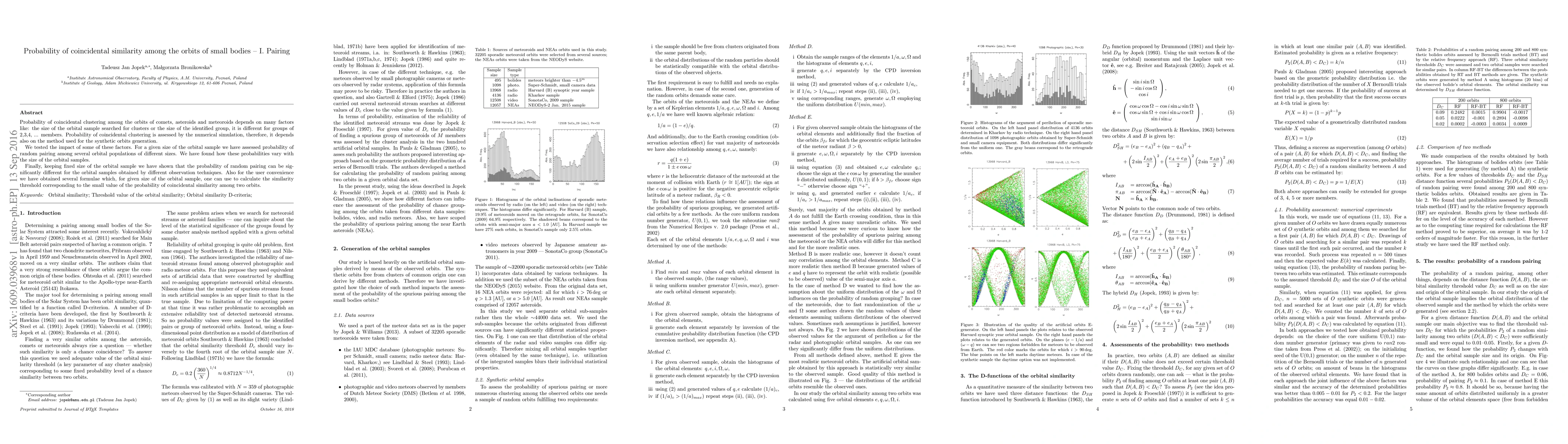 This paper investigates the probability of coincidental similarity among the orbits of small celestial bodies, assessing how various factors like sample size and observation technique influence these probabilities. It also provides formulas to estimate the threshold for determining whether observed orbital similarities are likely coincidental or significant.