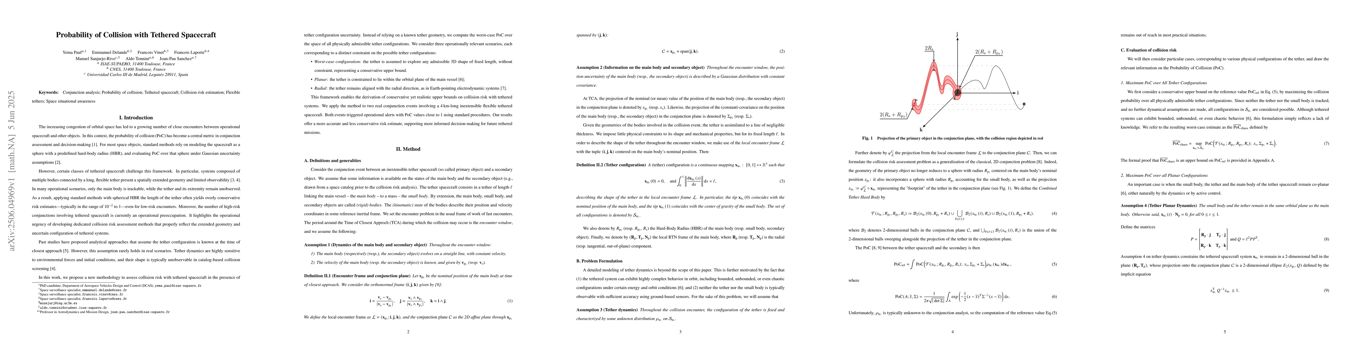 New method for estimating probability of collision with tethered spacecraft improves accuracy over existing methods, providing more informed collision avoidance decisions.
