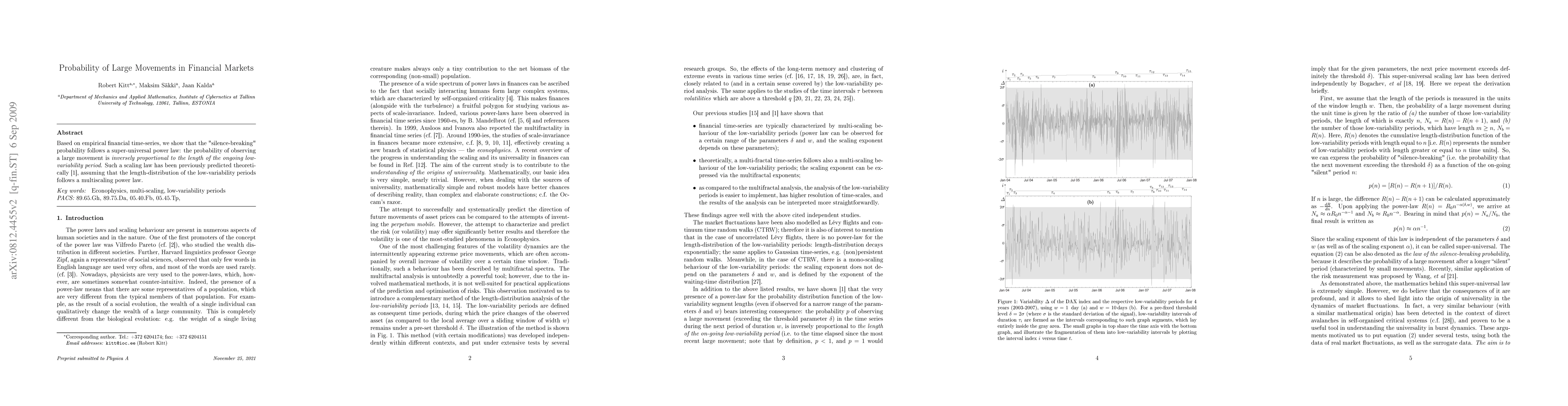 Based on empirical financial time-series, we show that the "silence-breaking" probability follows a super-universal power law: the probability of observing a large movement is inversely proportional to the length of the on-going low-variability period. Such a scaling law has been previously predicted theoretically [R. Kitt, J. Kalda, Physica A 353 (2005) 480], assuming that the length-distribution of the low-variability periods follows a multiscaling power law.