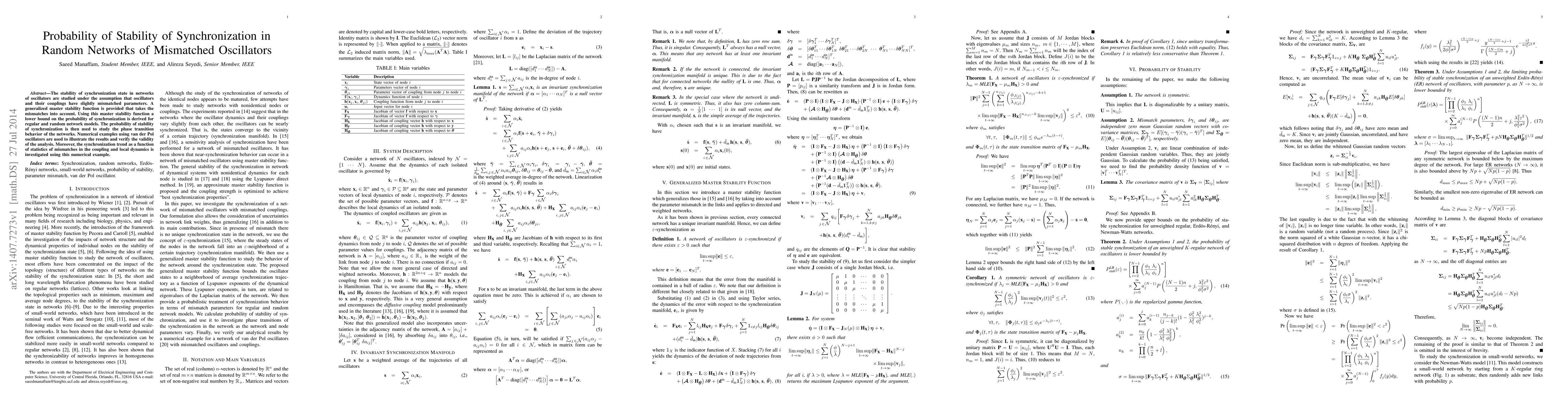 This paper explores the stability of synchronization in random networks of mismatched oscillators, providing a generalized master stability function to account for parameter mismatches. It derives a lower bound on the probability of synchronization for both regular and random networks, and uses numerical examples with van der Pol oscillators to illustrate and validate the analysis.