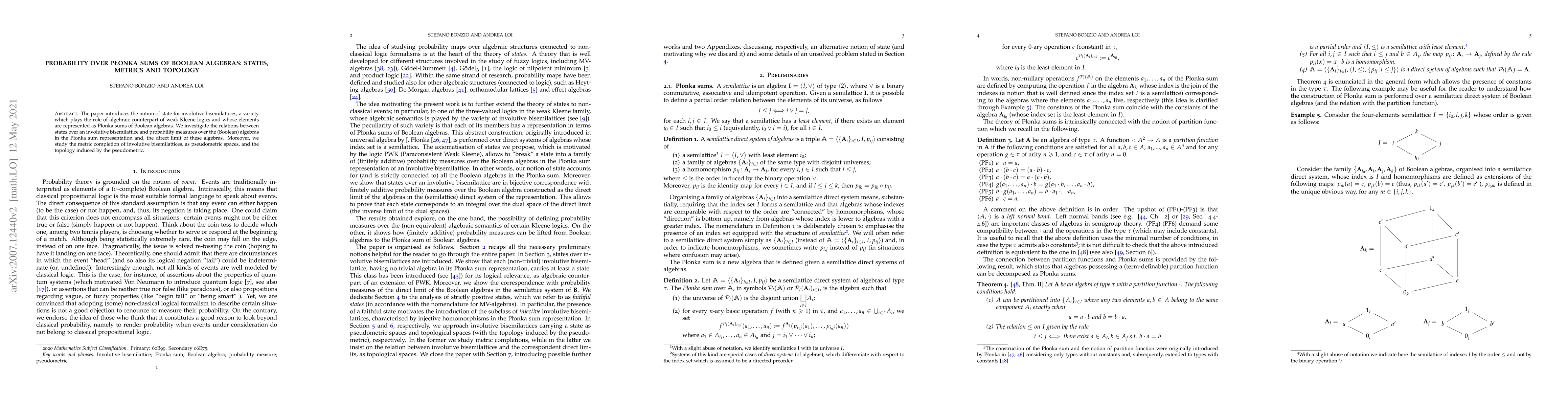 The paper introduces the notion of state for involutive bisemilattices, a variety which plays the role of algebraic counterpart of paraconsistent weak Kleene logic and whose elements are represented as Plonka sum of Boolean algebras. We investigate the relations between states over an involutive bisemilattice and probability measures over the (Boolean) algebras in the Plonka sum representation and, the direct limit of these algebras. Moreover, we study completition of involutive bisemilattices, as pseudometric spaces, and the topology induced by the pseudometric.