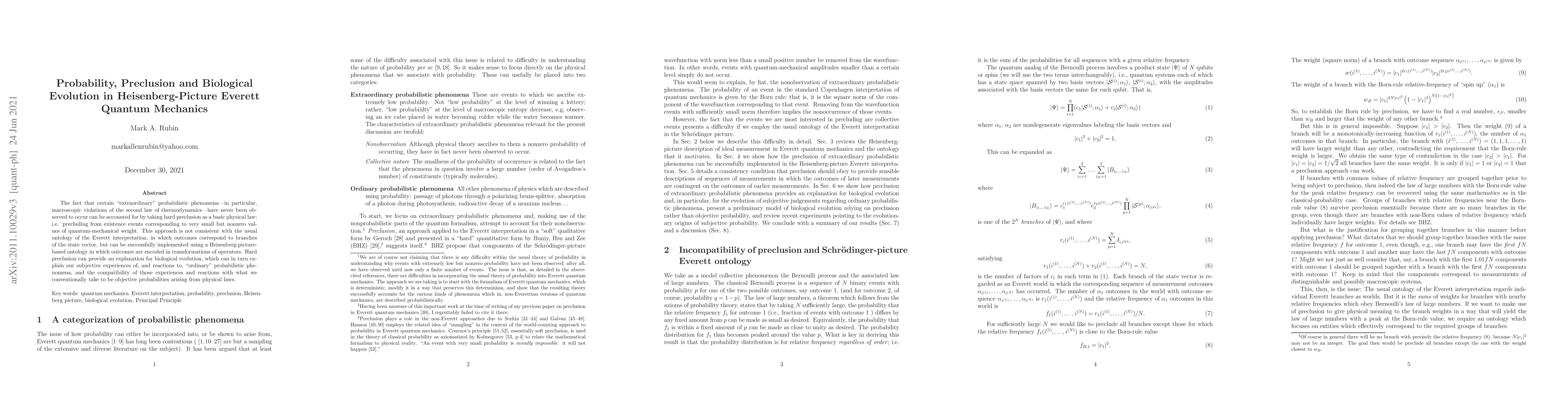 The fact that certain "extraordinary" probabilistic phenomena--in particular, macroscopic violations of the second law of thermodynamics--have never been observed to occur can be accounted for by taking hard preclusion as a basic physical law; i.e. precluding from existence events corresponding to very small but nonzero values of quantum-mechanical weight. This approach is not consistent with the usual ontology of the Everett interpretation, in which outcomes correspond to branches of the state vector, but can be successfully implemented using a Heisenberg-picture-based ontology in which outcomes are encoded in transformations of operators. Hard preclusion can provide an explanation for biological evolution, which can in turn explain our subjective experiences of, and reactions to, "ordinary" probabilistic phenomena, and the compatibility of those experiences and reactions with what we conventionally take to be objective probabilities arising from physical laws.