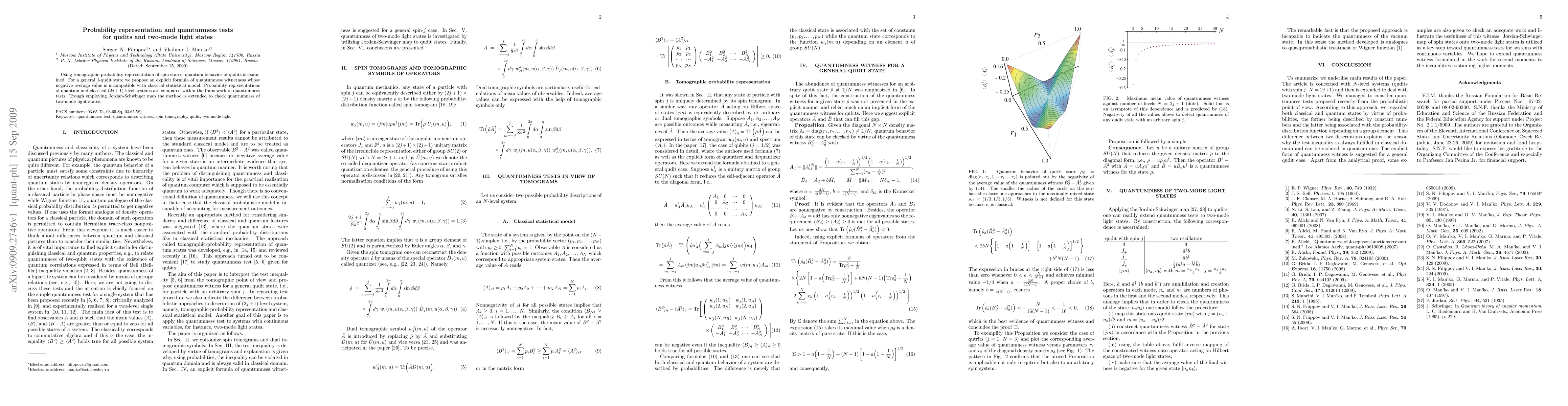 This paper proposes a tomographic-probability representation to examine quantum behavior in qudits, introducing a formula for quantumness that contradicts classical statistical models. The method is extended to assess the quantumness of two-mode light states using the Jordan-Schwinger map.