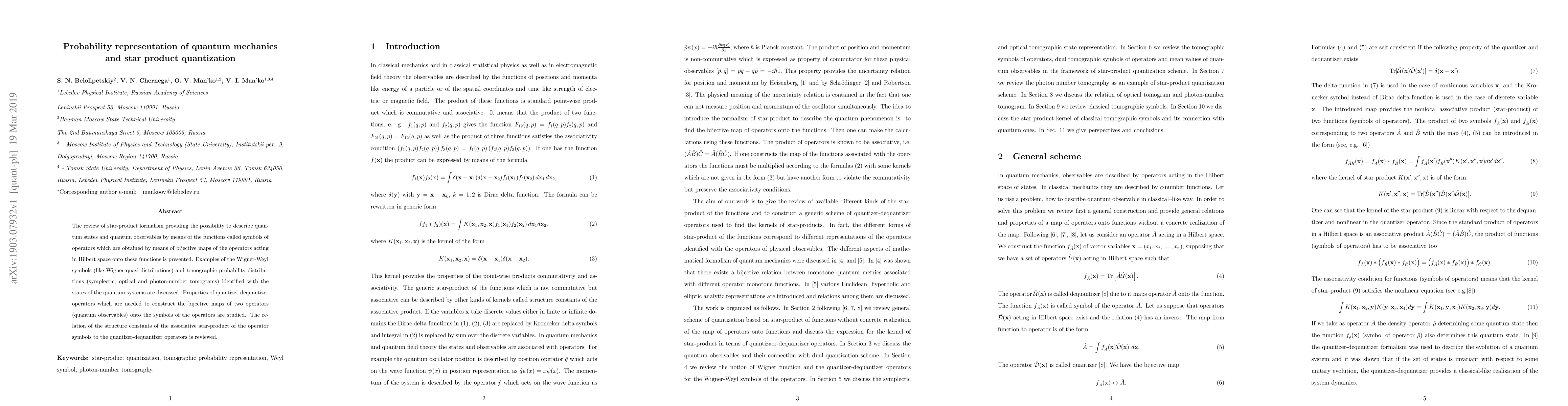 This paper reviews a formalism for describing quantum states and observables using symbols of operators, which are derived from bijective maps between operators and these symbols. It explores the properties of these maps and their relation to star-product quantization.