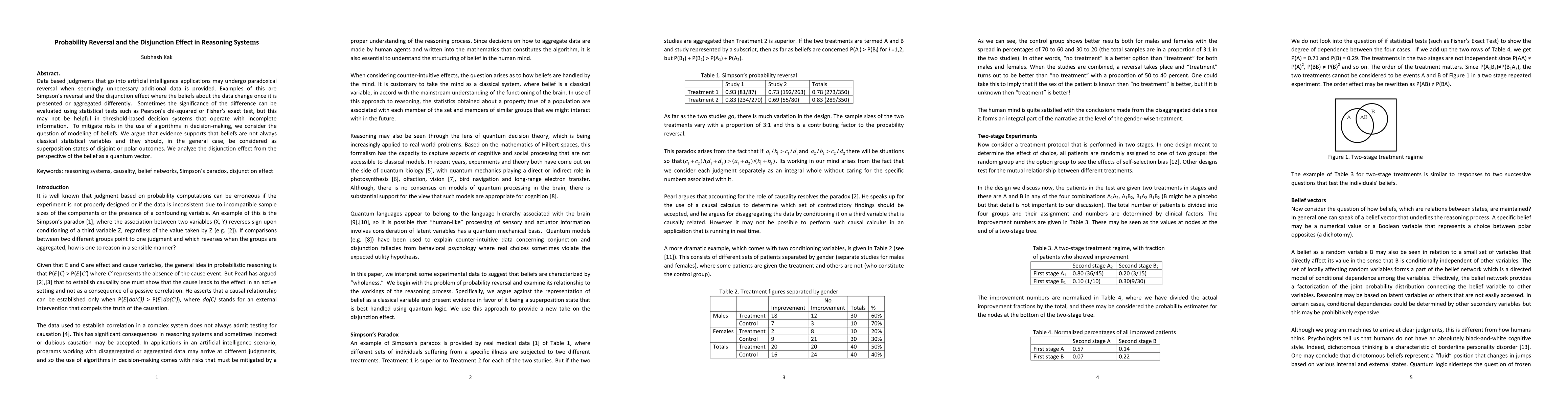 Data based judgments go into artificial intelligence applications but they undergo paradoxical reversal when seemingly unnecessary additional data is provided. Examples of this are Simpson's reversal and the disjunction effect where the beliefs about the data change once it is presented or aggregated differently. Sometimes the significance of the difference can be evaluated using statistical tests such as Pearson's chi-squared or Fisher's exact test, but this may not be helpful in threshold-based decision systems that operate with incomplete information. To mitigate risks in the use of algorithms in decision-making, we consider the question of modeling of beliefs. We argue that evidence supports that beliefs are not classical statistical variables and they should, in the general case, be considered as superposition states of disjoint or polar outcomes. We analyze the disjunction effect from the perspective of the belief as a quantum vector.