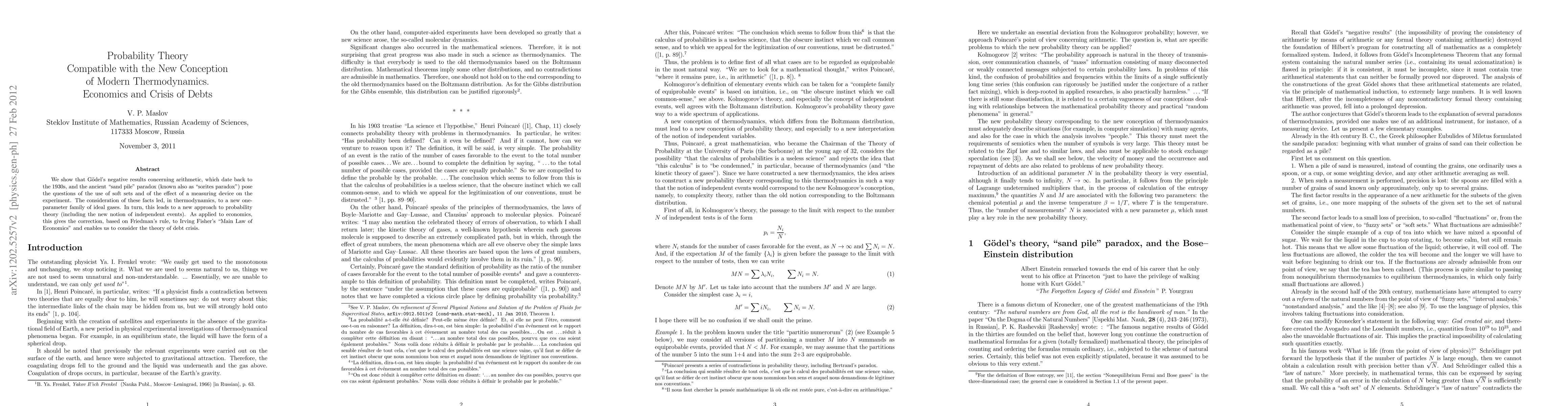 We show that G\"odel's negative results concerning arithmetic, which date back to the 1930s, and the ancient "sand pile" paradox (known also as "sorites paradox") pose the questions of the use of fuzzy sets and of the effect of a measuring device on the experiment. The consideration of these facts led, in thermodynamics, to a new one-parameter family of ideal gases. In turn, this leads to a new approach to probability theory (including the new notion of independent events). As applied to economics, this gives the correction, based on Friedman's rule, to Irving Fisher's "Main Law of Economics" and enables us to consider the theory of debt crisis.