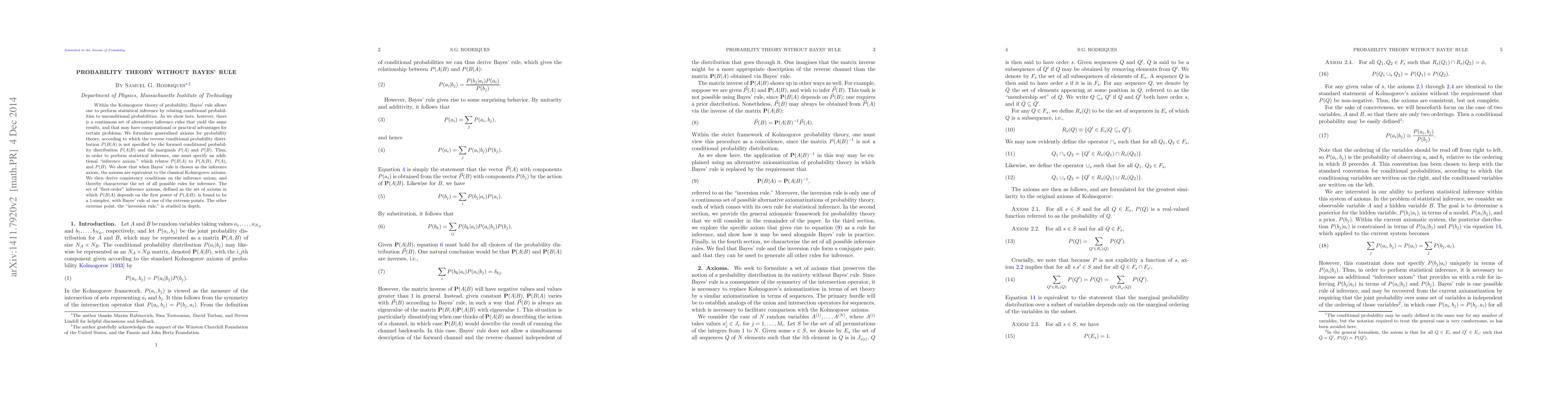 This paper explores the existence of alternative inference rules in probability theory that do not rely on Bayes' rule, demonstrating a continuous set of such rules that yield equivalent results. It proposes generalized axioms for probability theory and identifies the set of "first-order" inference axioms, showing Bayes' rule as one extreme and the inversion rule as the other.