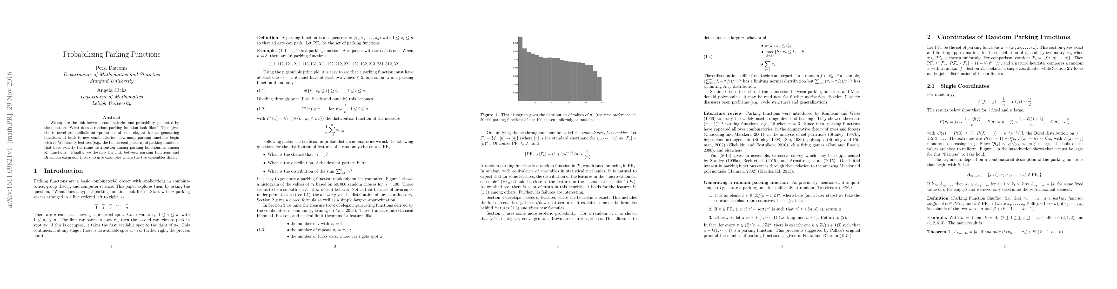 We explore the link between combinatorics and probability generated by the question "What does a random parking function look like?" This gives rise to novel probabilistic interpretations of some elegant, known generating functions. It leads to new combinatorics: how many parking functions begin with $i$? We classify features (e.g., the full descent pattern) of parking functions that have exactly the same distribution among parking functions as among all functions. Finally, we develop the link between parking functions and Brownian excursion theory to give examples where the two ensembles differ.