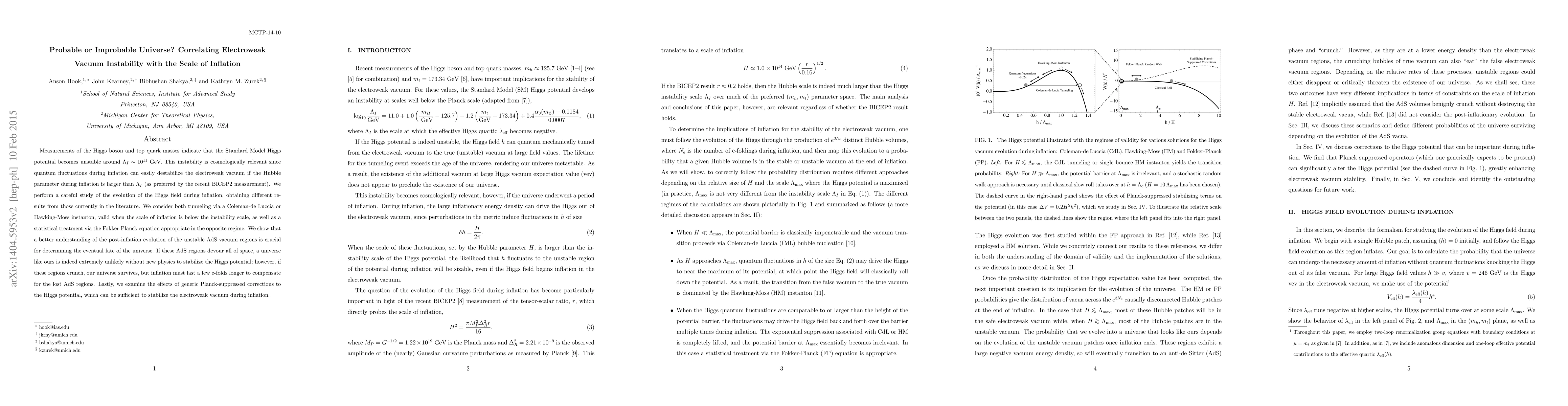 Measurements of the Higgs boson and top quark masses indicate that the Standard Model Higgs potential becomes unstable around $\Lambda_I \sim 10^{11}$ GeV. This instability is cosmologically relevant since quantum fluctuations during inflation can easily destabilize the electroweak vacuum if the Hubble parameter during inflation is larger than $\Lambda_I$ (as preferred by the recent BICEP2 measurement). We perform a careful study of the evolution of the Higgs field during inflation, obtaining different results from those currently in the literature. We consider both tunneling via a Coleman-de Luccia or Hawking-Moss instanton, valid when the scale of inflation is below the instability scale, as well as a statistical treatment via the Fokker-Planck equation appropriate in the opposite regime. We show that a better understanding of the post-inflation evolution of the unstable AdS vacuum regions is crucial for determining the eventual fate of the universe. If these AdS regions devour all of space, a universe like ours is indeed extremely unlikely without new physics to stabilize the Higgs potential; however, if these regions crunch, our universe survives, but inflation must last a few e-folds longer to compensate for the lost AdS regions. Lastly, we examine the effects of generic Planck-suppressed corrections to the Higgs potential, which can be sufficient to stabilize the electroweak vacuum during inflation.