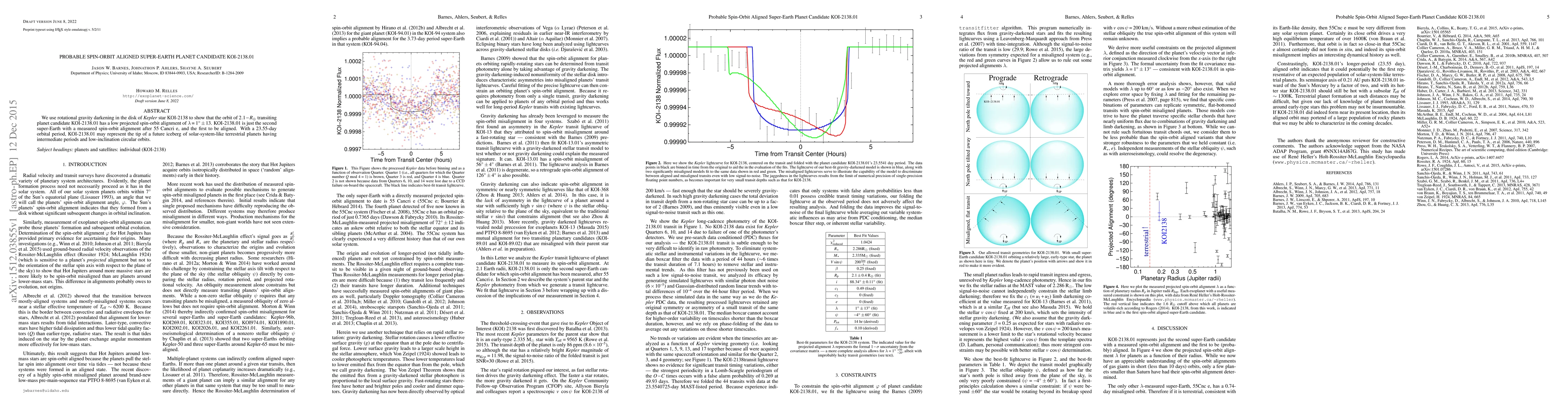 This study identifies KOI-2138.01, a 2.1 Earth-radius super-Earth planet candidate, as the second super-Earth with measured spin-orbit alignment, showing a low projected alignment of 1°±13°. This discovery suggests a potential abundance of solar-system-like terrestrial planets with similar characteristics.
