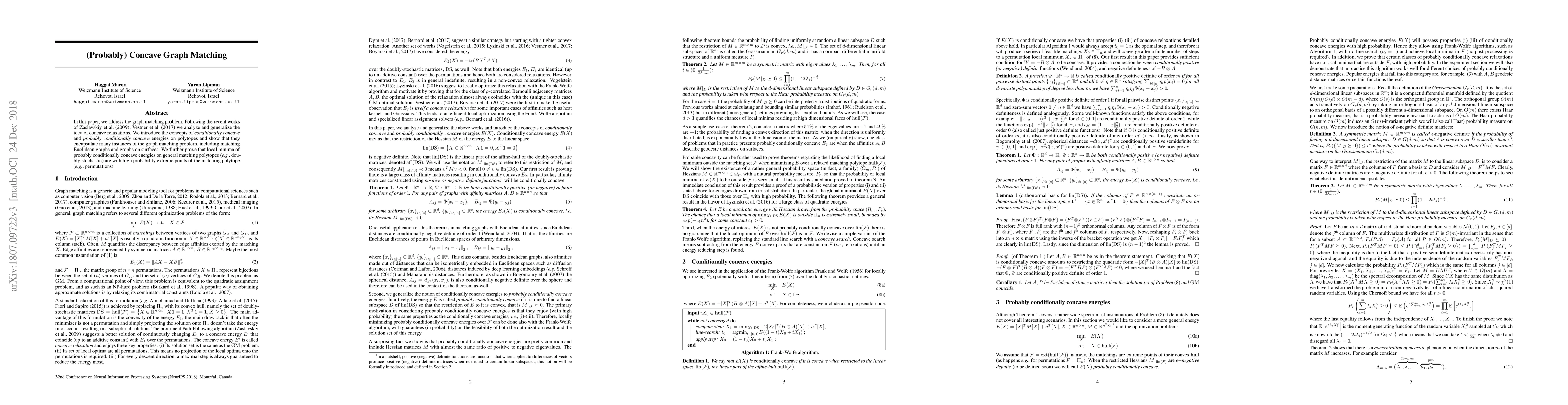 In this paper we address the graph matching problem. Following the recent works of \cite{zaslavskiy2009path,Vestner2017} we analyze and generalize the idea of concave relaxations. We introduce the concepts of conditionally concave and probably conditionally concave energies on polytopes and show that they encapsulate many instances of the graph matching problem, including matching Euclidean graphs and graphs on surfaces. We further prove that local minima of probably conditionally concave energies on general matching polytopes (e.g., doubly stochastic) are with high probability extreme points of the matching polytope (e.g., permutations).